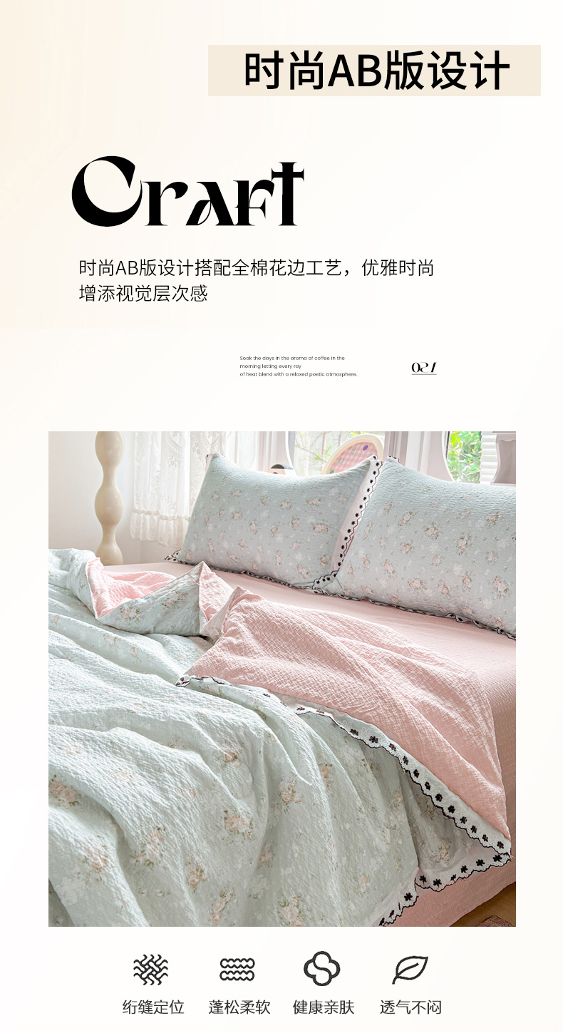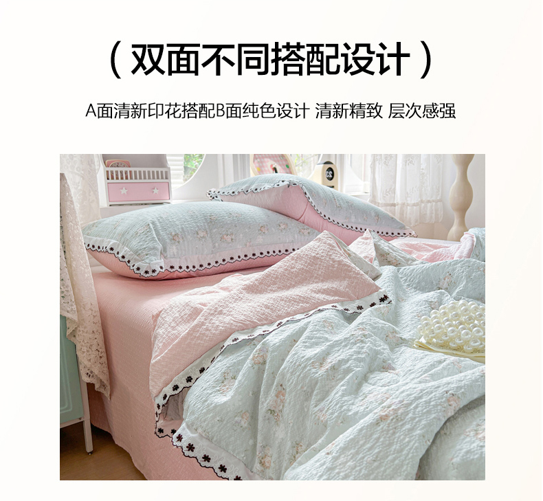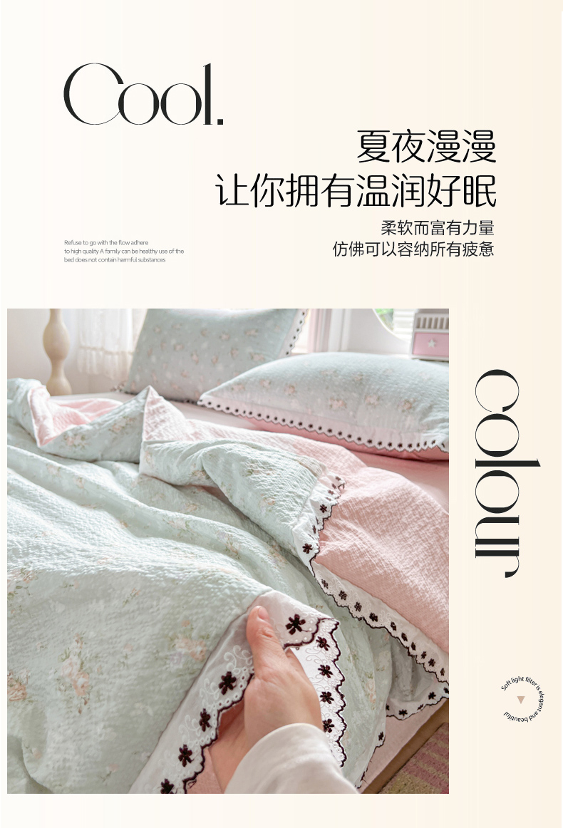 • 91家纺网 家纺一手货源 找家纺 恒尚居 2026新款A类泡芙纱花边夏被夏凉被空调被四套件 【清新粉玫瑰】全棉花边