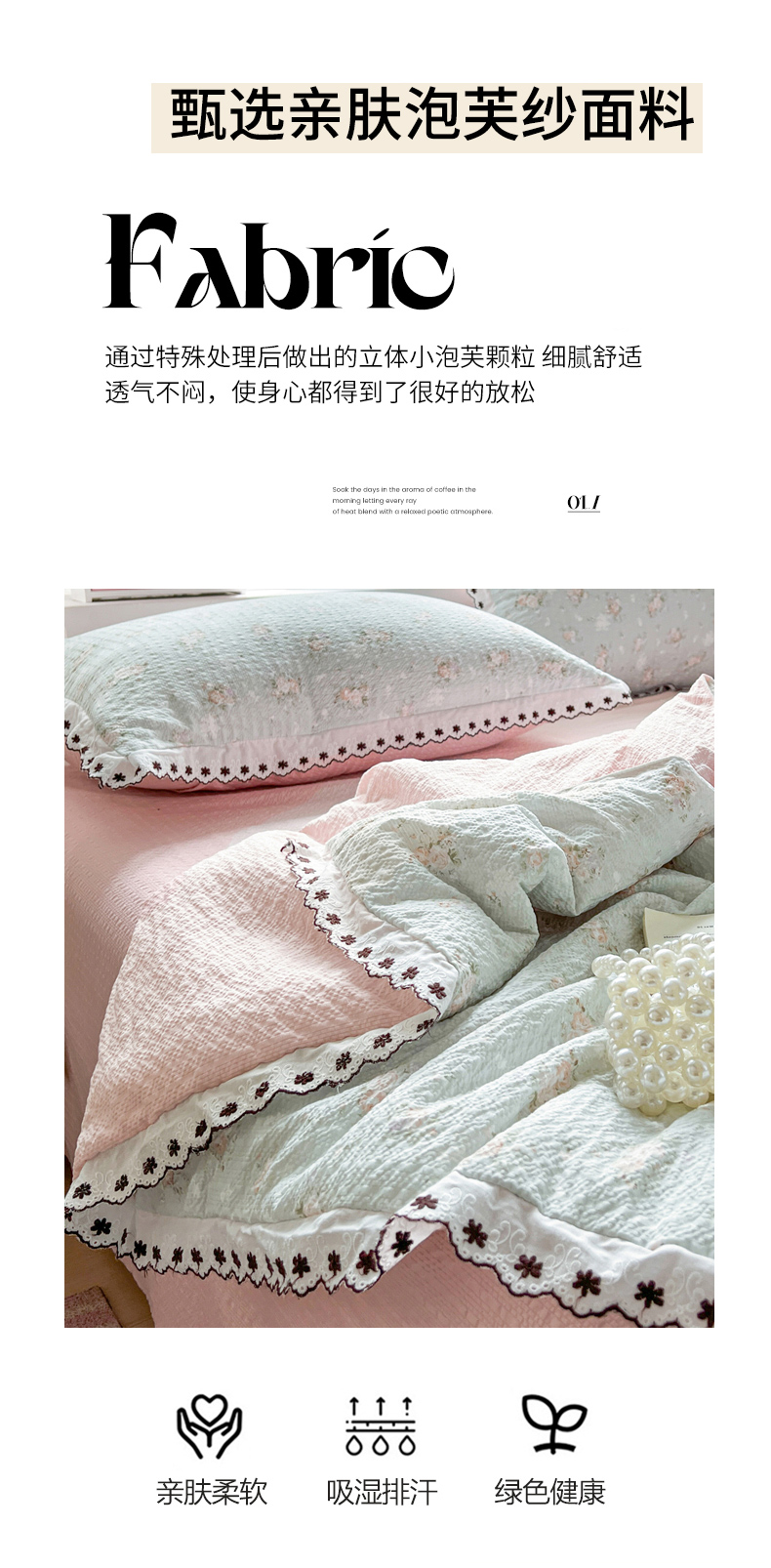 当前位置: 91家纺网 > 商品网购 > 被子 > 夏被 > 恒尚居 2026新款A类泡芙纱花边夏被夏凉被空调被四套件 【清新粉玫瑰】全棉花边