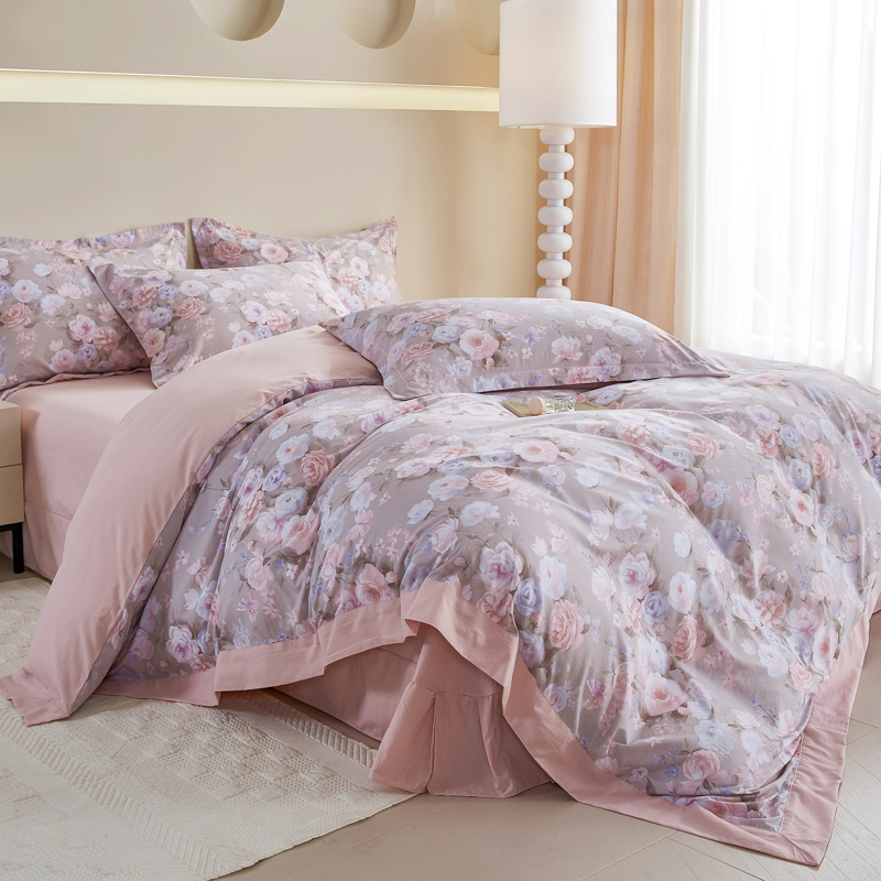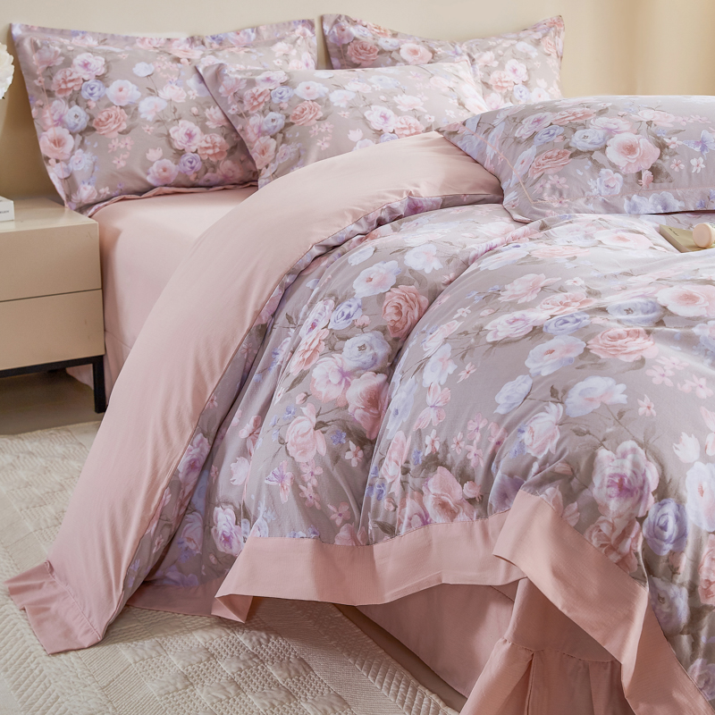 漫仙阁家纺 2026新款宽边四件套 雾粉玫瑰