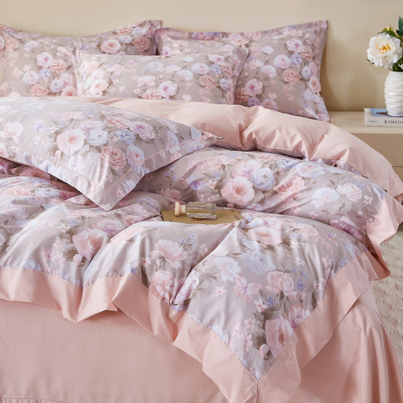 商品名称:漫仙阁家纺 2026新款宽边四件套 雾粉玫瑰