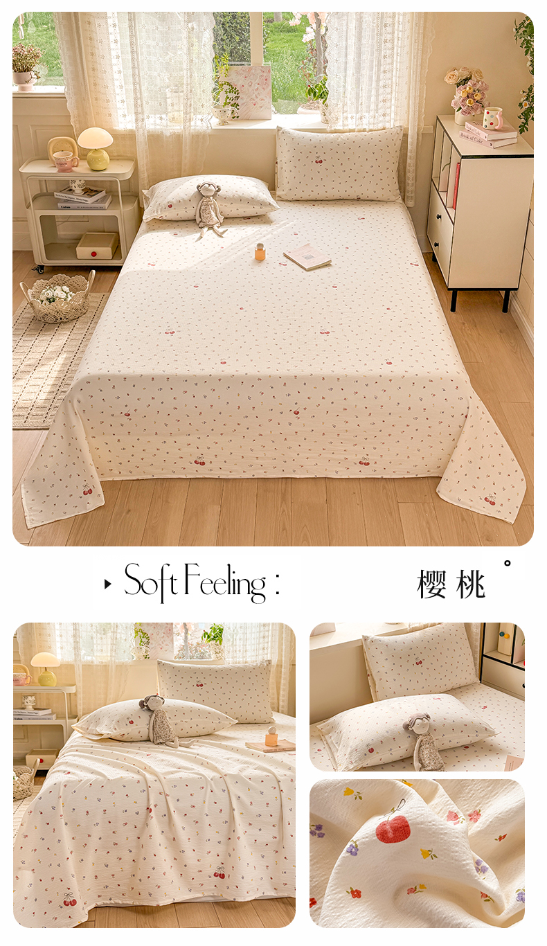 (总)丝芙妮家居 2026新款皱皱棉双层纱泡芙棉床单单床单,缤纷南瓜,草莓奶昔,春之约,格纹爱心,花清梦,花枝狗狗,假日小狗,莓果冰淇淋,泡芙蝴蝶结,浅川织格,素描花海,晚安甜心,星月点点