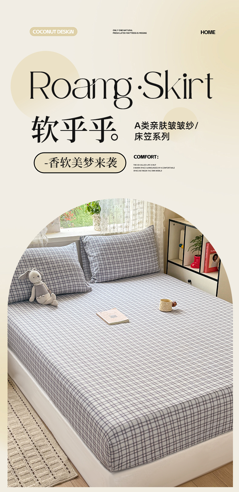丝芙妮家居 2026春夏新款皱皱棉双层纱泡芙棉床笠 床笠单件 怀旧-兰