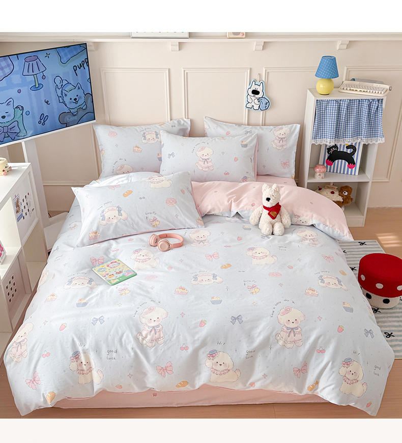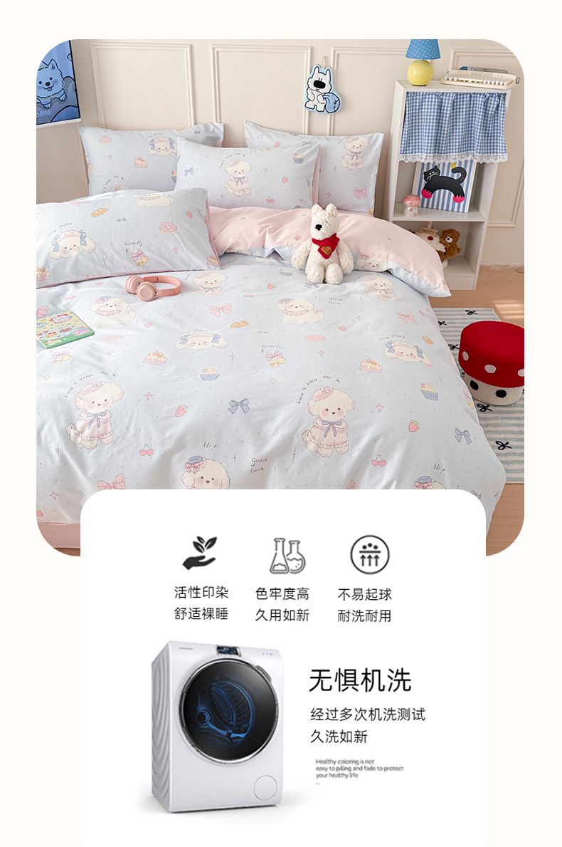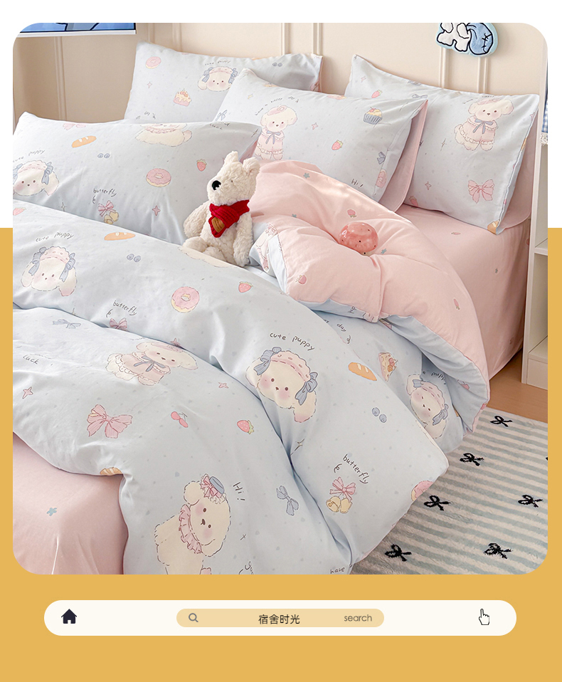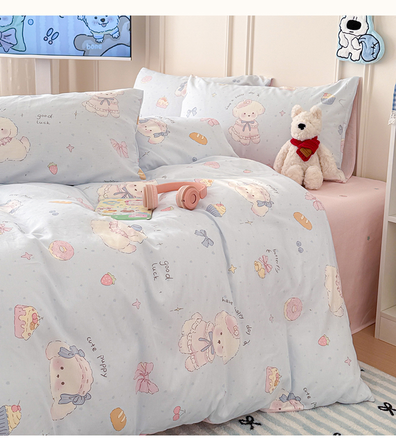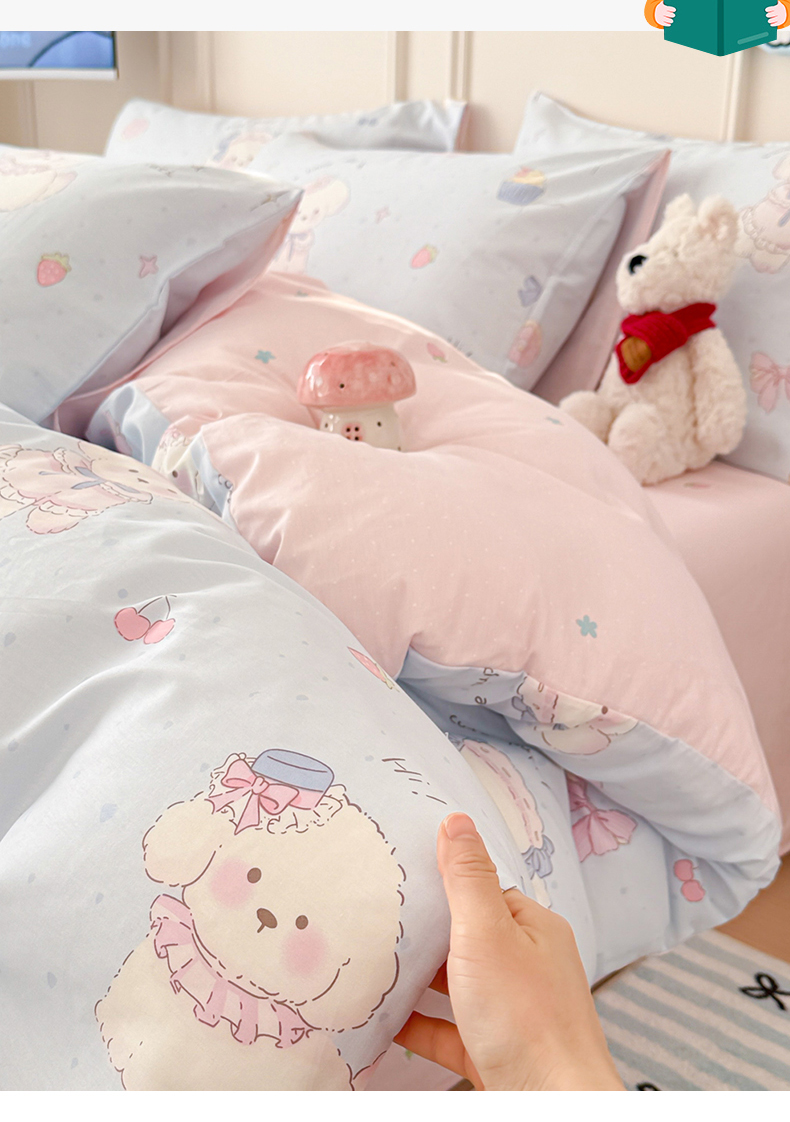 当前位置: 91家纺网 > 商品网购 > 床品套件 > 四件套 > 全棉普通四件套 > 女子家纺 2026新款全棉纯棉12868卡通印花四件套 蓝粉汪集