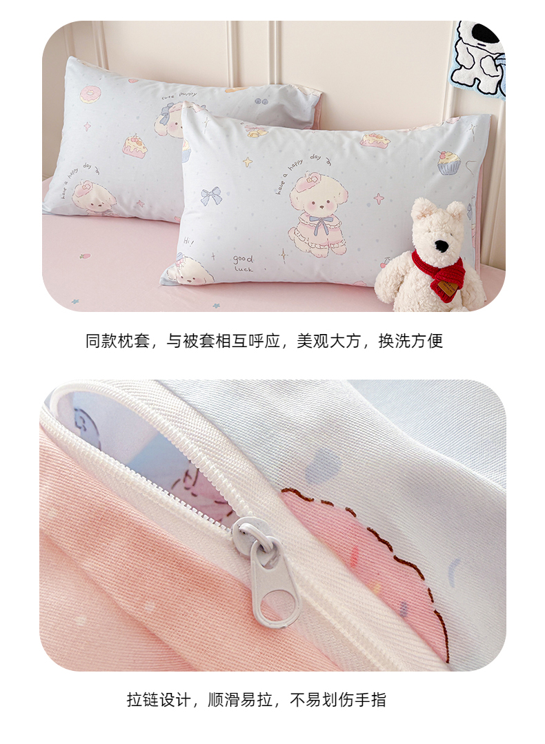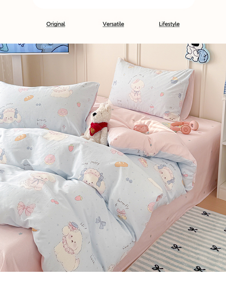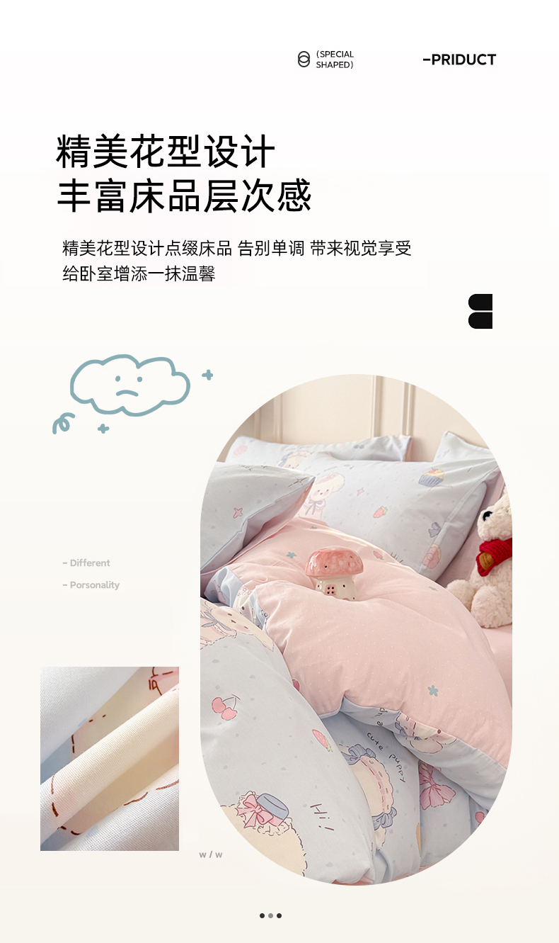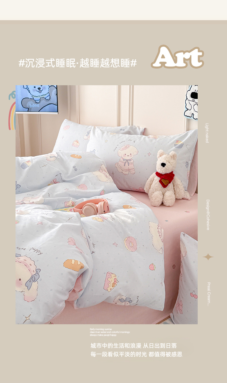当前位置: 91家纺网 > 商品网购 > 床品套件 > 四件套 > 全棉普通四件套 > 女子家纺 2026新款全棉纯棉12868卡通印花四件套 蓝粉汪集