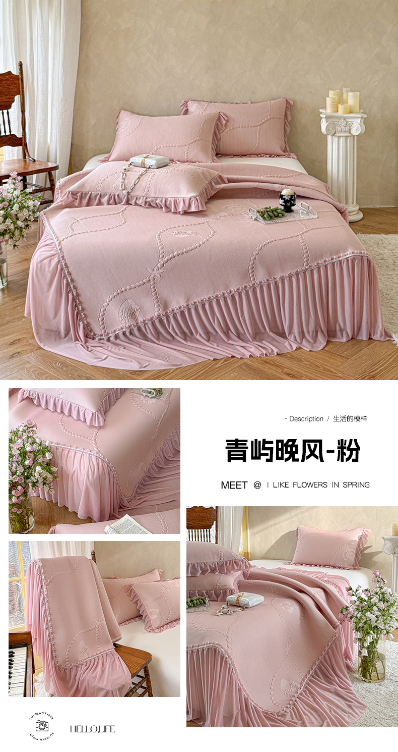 • 91家纺网 家纺一手货源 找家纺 (总)赫本家纺 2026新款全棉镂空花边云感印花双层纱夏被四件套,粉雾轻蔷薇,海盐蝴蝶结,灰糖花房,灰糖心事,焦糖奶芙,绿野精灵,暖茶花园,青雾花野,晴朗紫,软萌小马,桃桃甜心,雾蓝格小兔