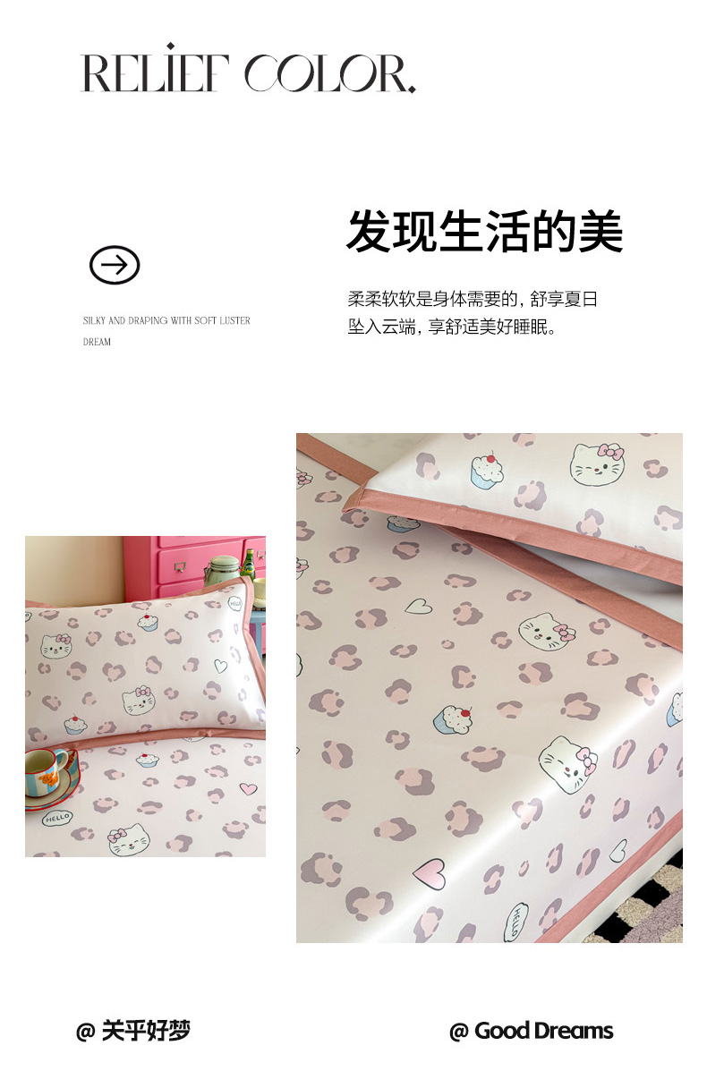 (总)倾慕家纺 2026新款PE时尚风豆豆凉席卡通系列--床席款,爱心熊兔床席款,芭蕉叶床席款,斑点狗狗床席款,经典熊猫床席款,南瓜桔床席款,南瓜蓝床席款,时尚小猫床席款,小狗先生床席款