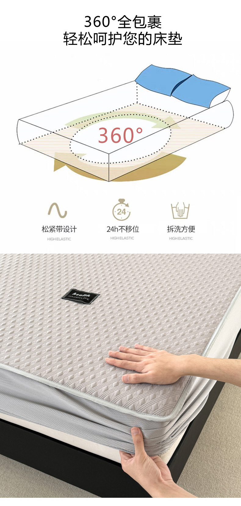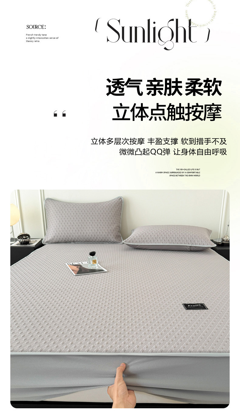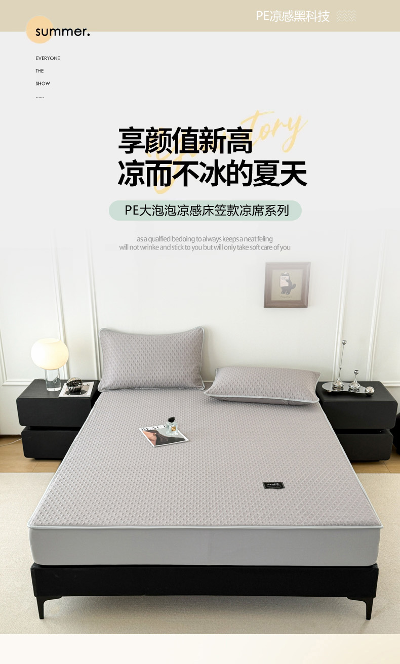 倾慕家纺 2026春夏新款全PE冰豆豆全包围床笠款凉席席子 菱形泡灰
