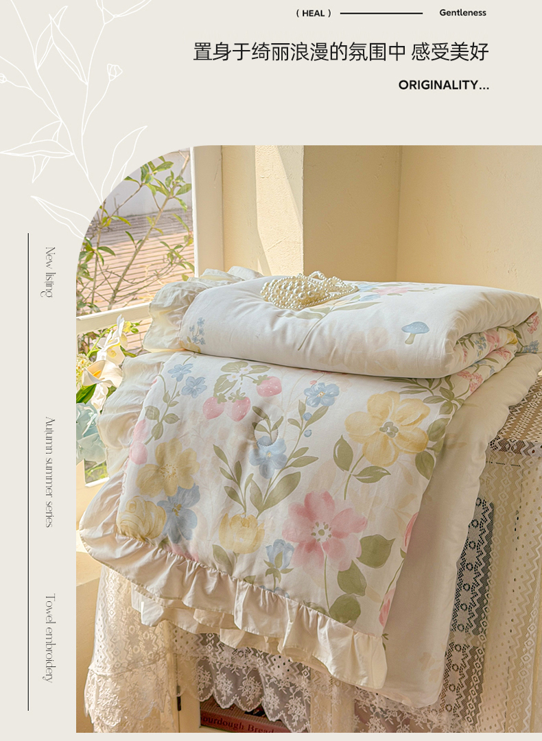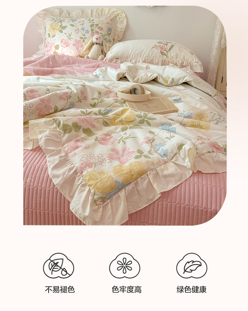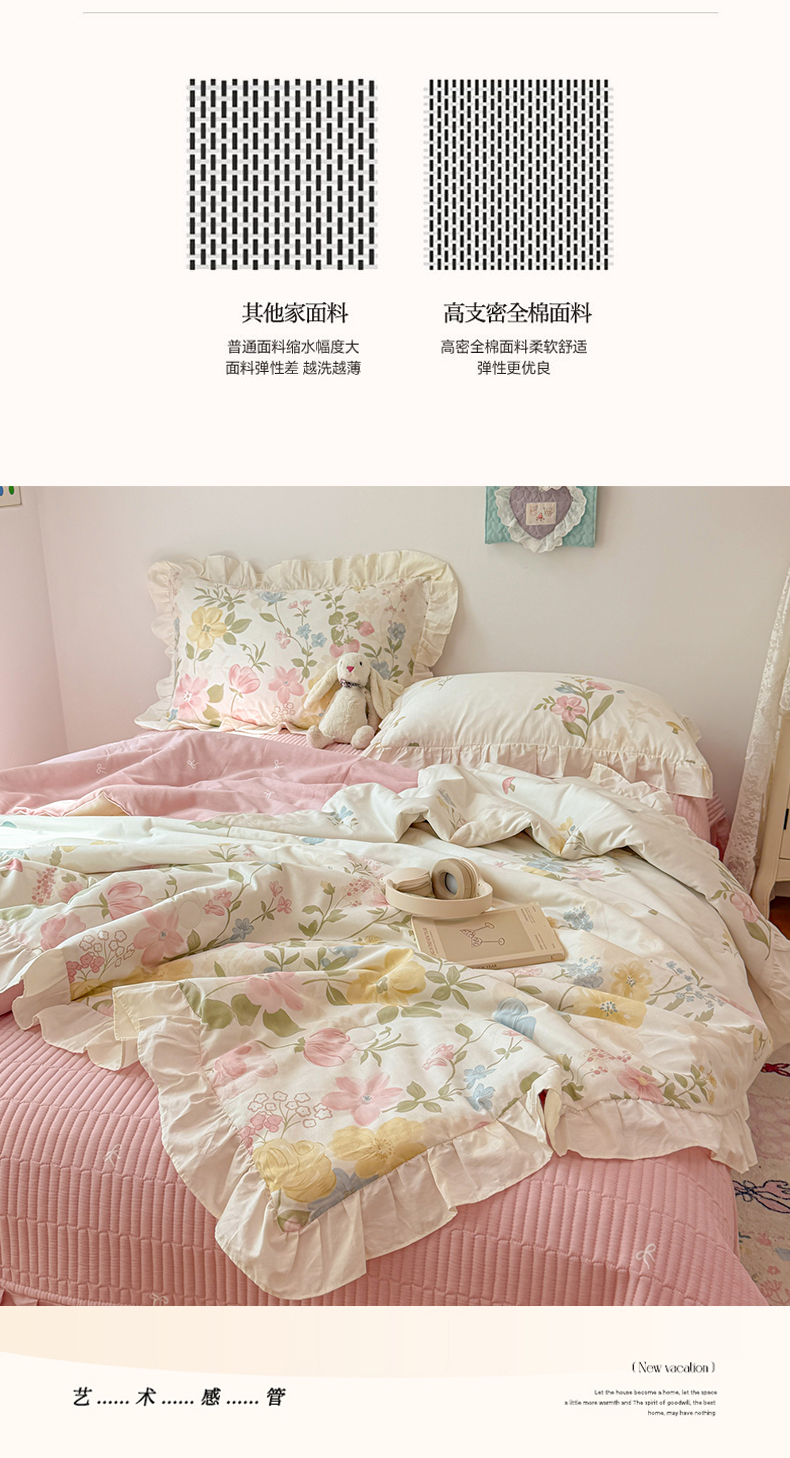 • 91家纺网 家纺一手货源 找家纺 女子家纺 2026新款全棉花边夏被全棉床盖夏被四件套 蕾丝花镜