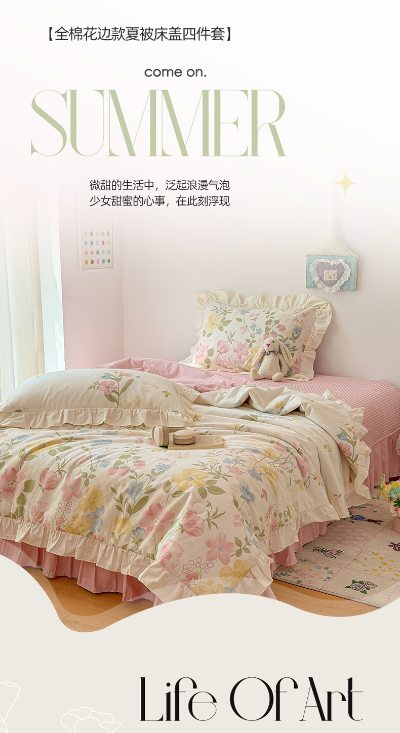 女子家纺 2026新款全棉花边夏被全棉床盖夏被四件套 蕾丝花镜
