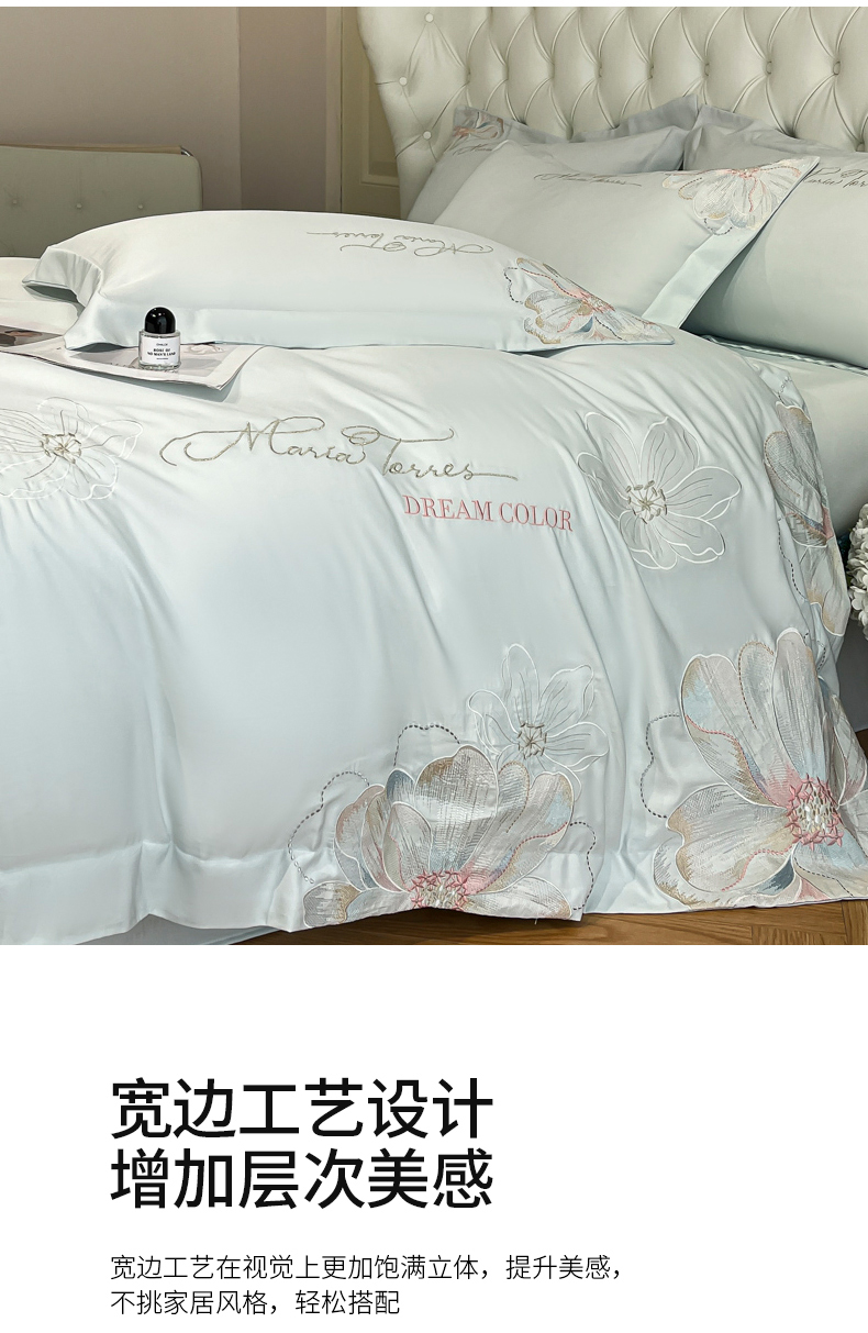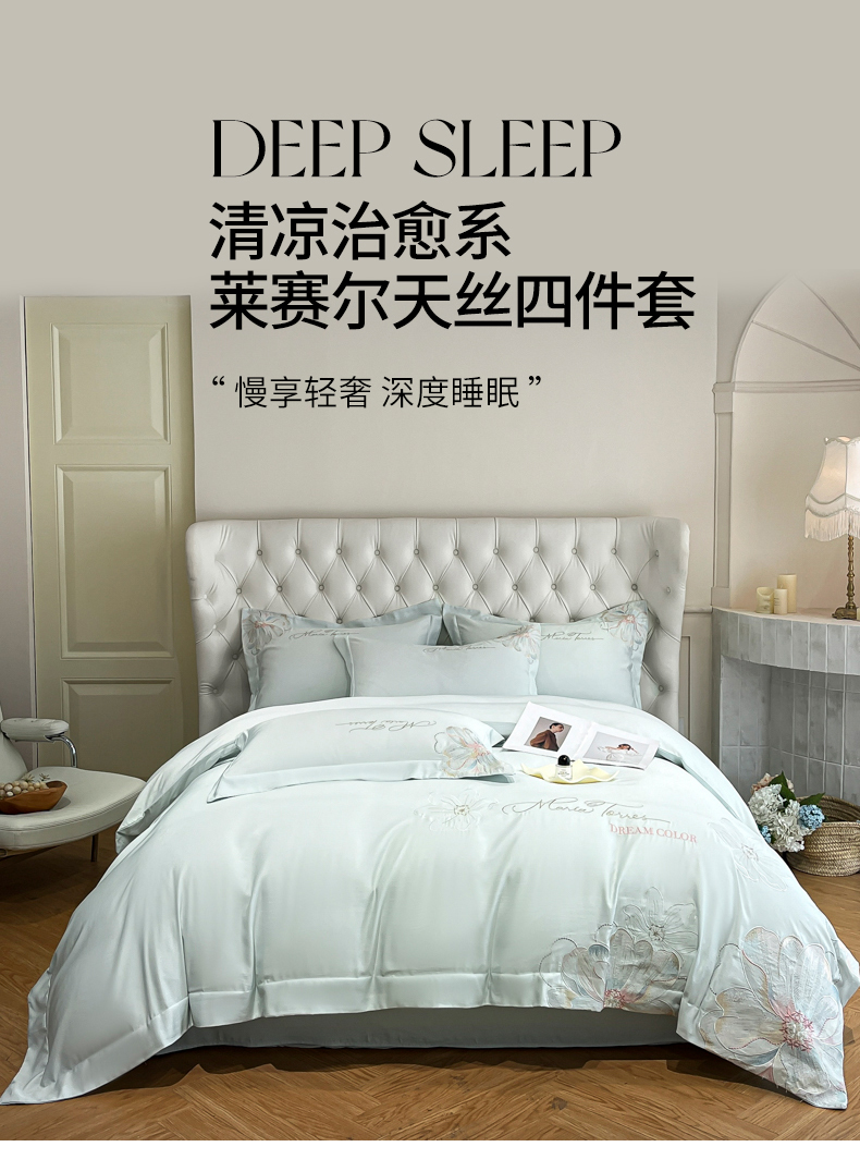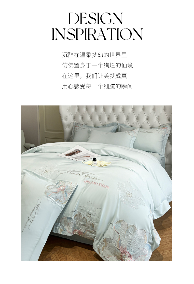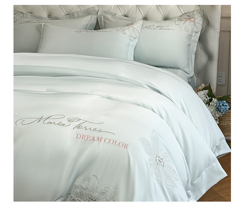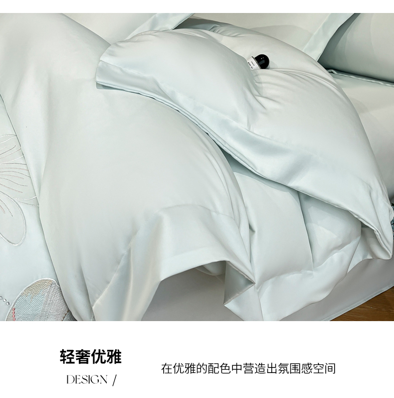 当前位置: 91家纺网 > 商品网购 > 床品套件 > 四件套 > 其它四件套 > 经年 2026春夏新款天丝刺绣四件套-时光 时光-抹茶绿