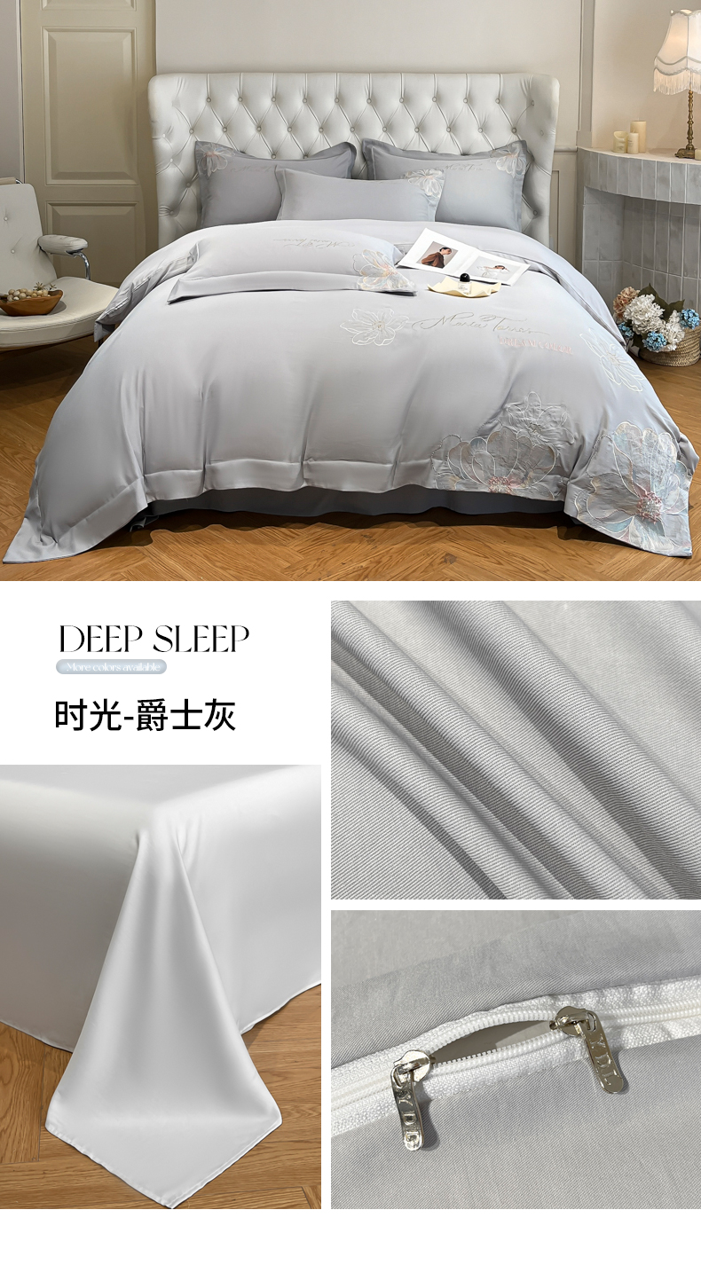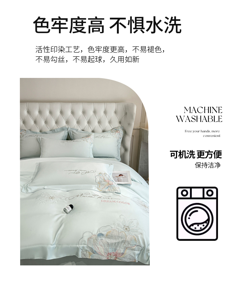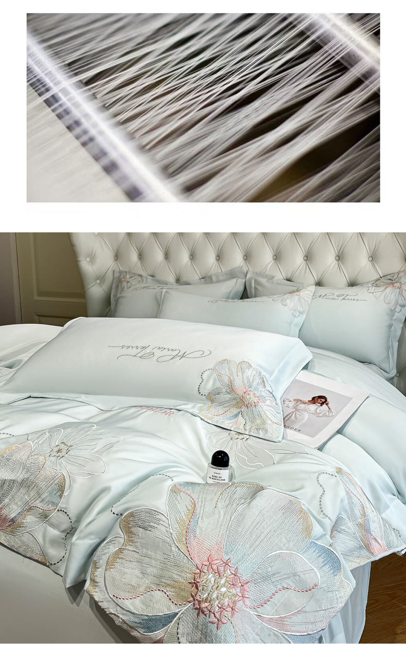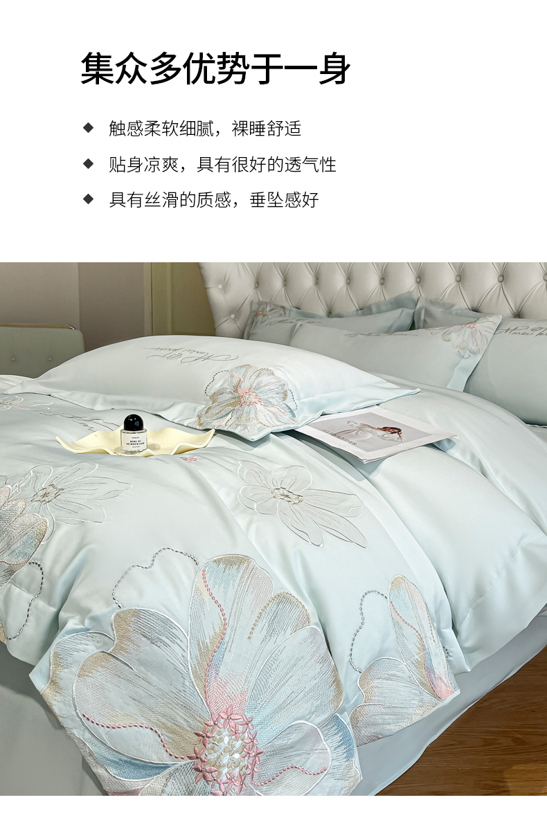 当前位置: 91家纺网 > 商品网购 > 床品套件 > 四件套 > 其它四件套 > 经年 2026春夏新款天丝刺绣四件套-时光 时光-抹茶绿