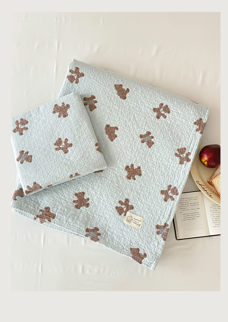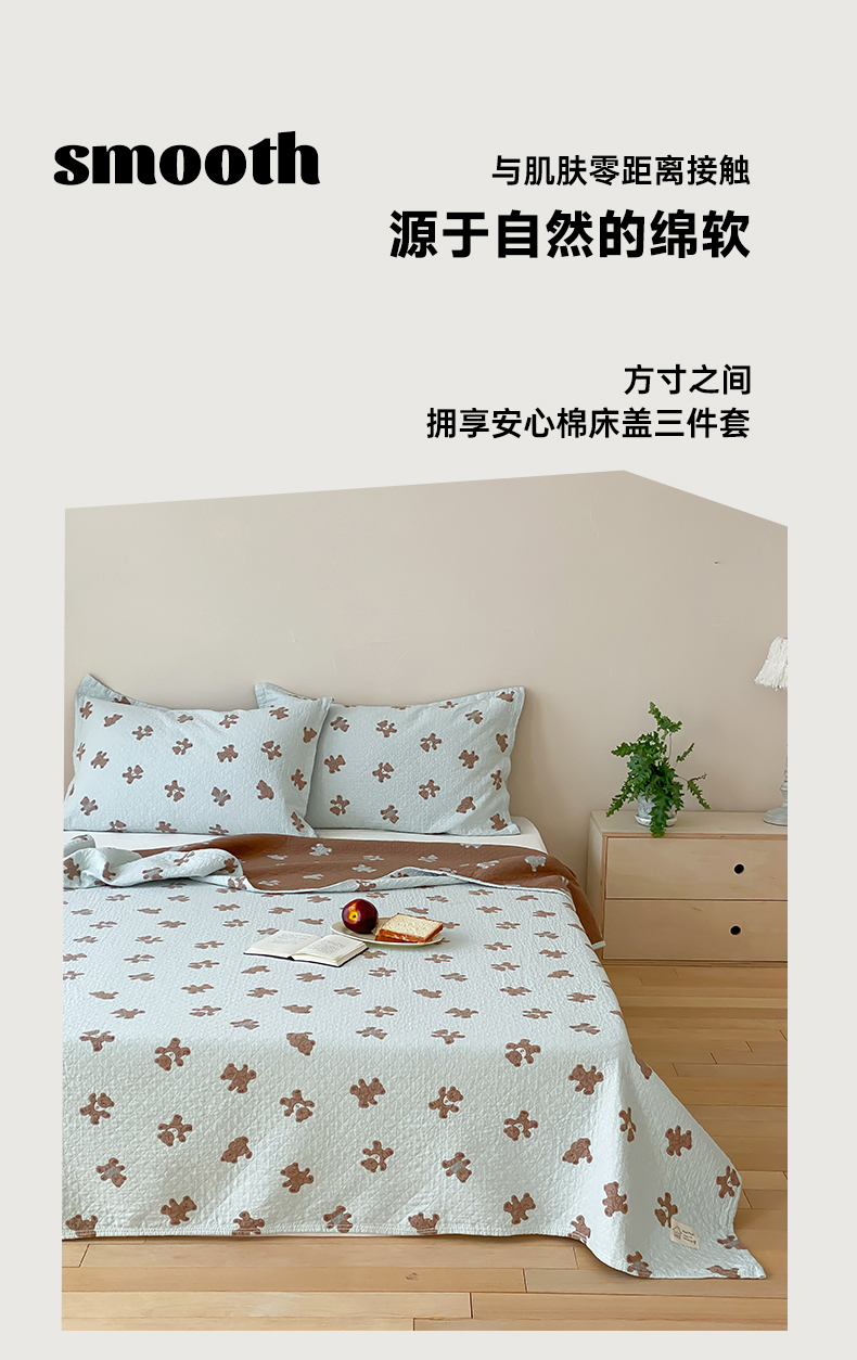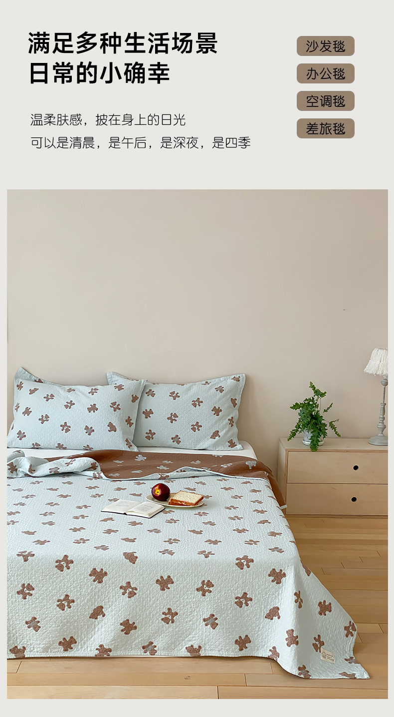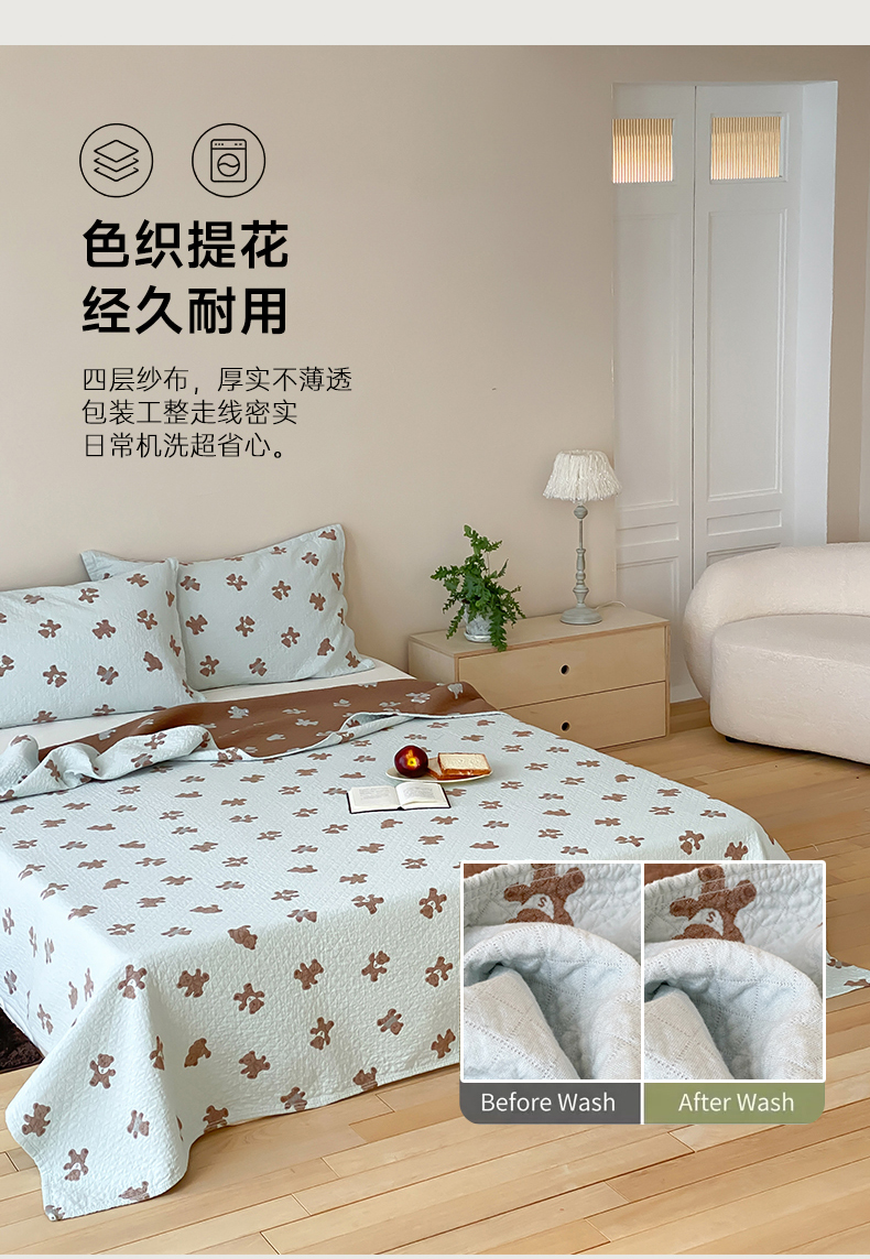 商品名称:麻依 2026新款安心棉床盖三件全棉四层纱布床单 松饼小熊-蓝