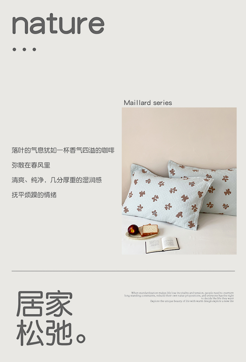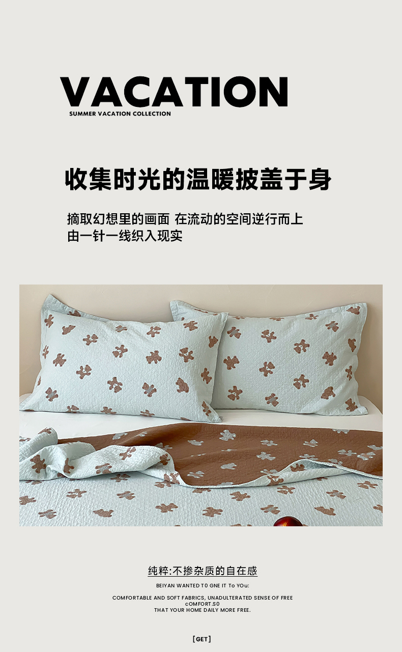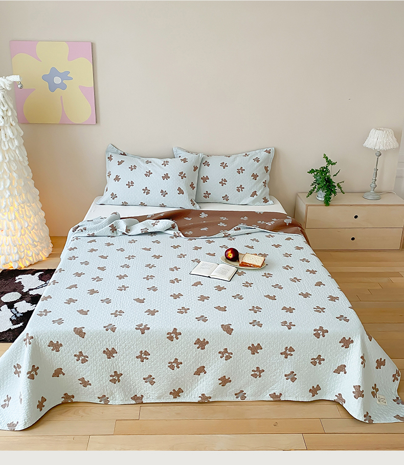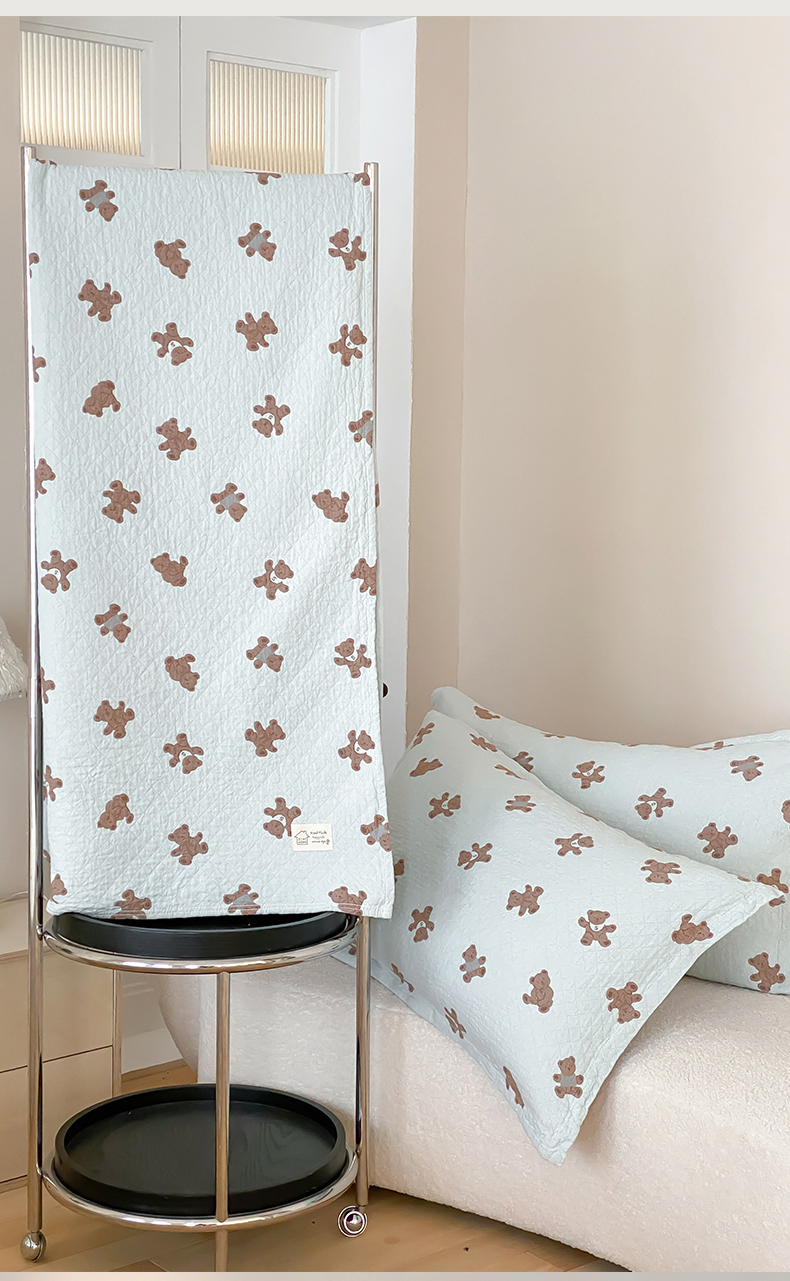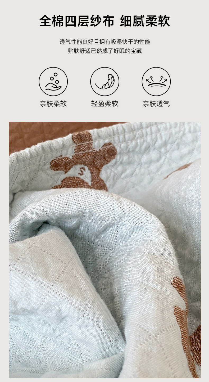 商品名称:麻依 2026新款安心棉床盖三件全棉四层纱布床单 松饼小熊-蓝