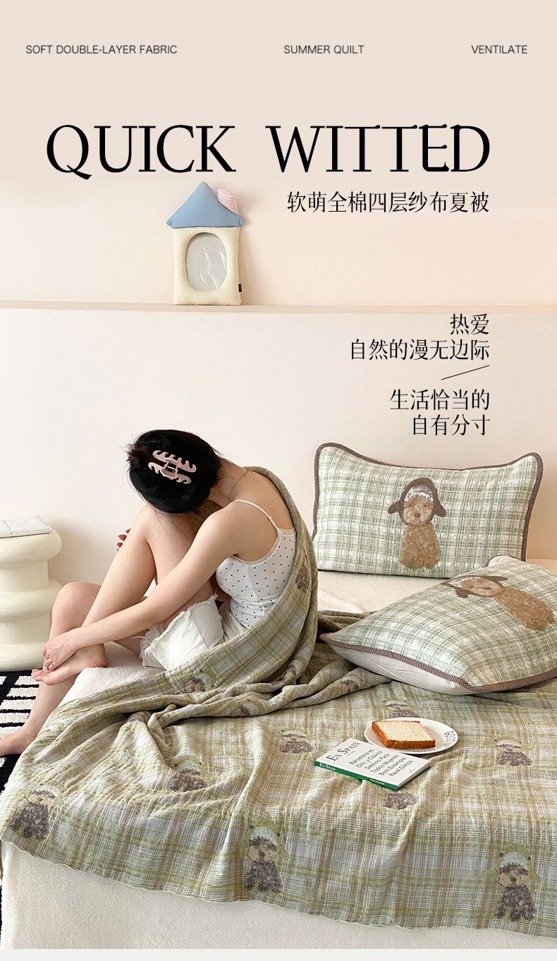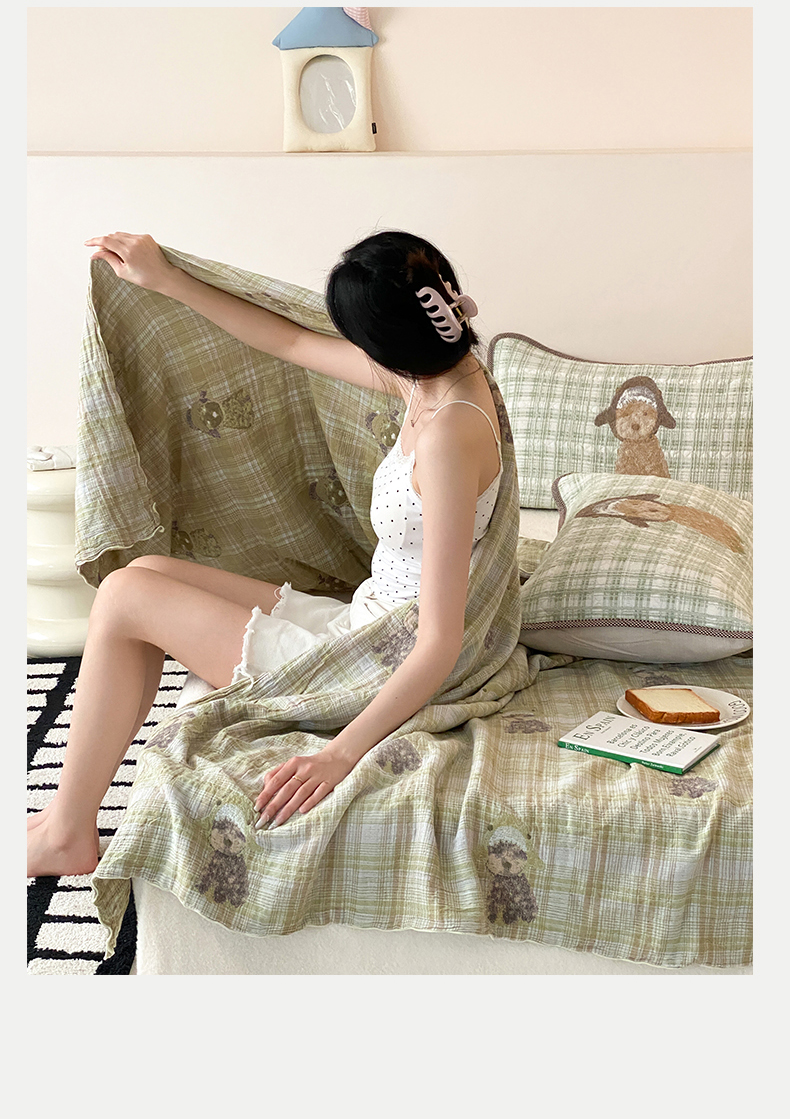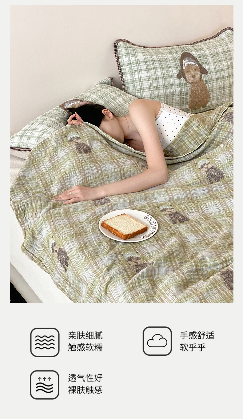 商品名称:麻依 2026新款软萌夏被全棉四层纱布 毛绒小狗