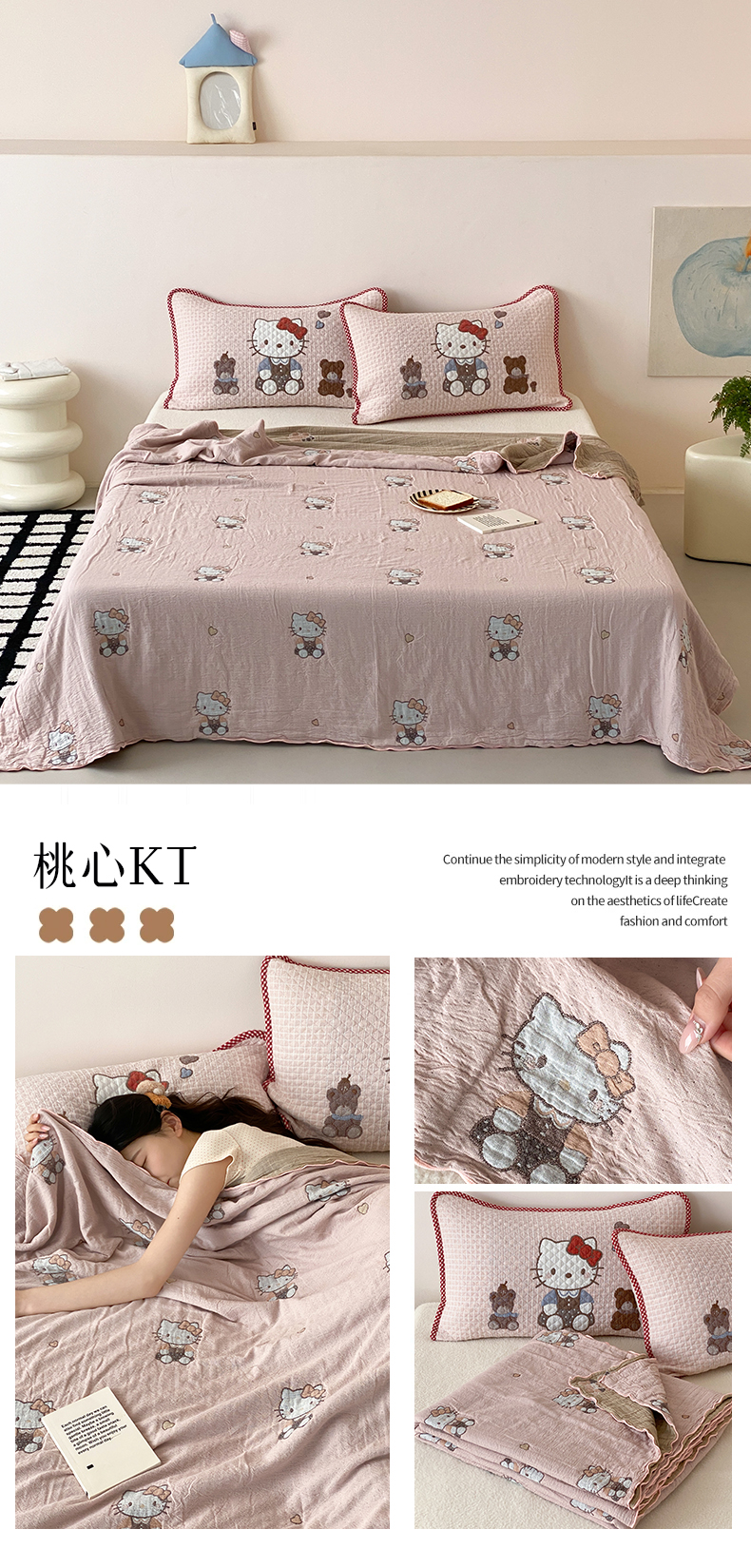 (总)麻依 2025新款安心棉床盖三件全棉四层纱布床单,粉色KT猫,花园小兔,凯蒂的快乐,可爱鸭鸭,可可猫咪-奶茶,可可猫咪-深咖,蓝色熊猫,团团KT,小熊格格,心心领结,欣欣樱桃,雪漫,樱桃兔猫,组合