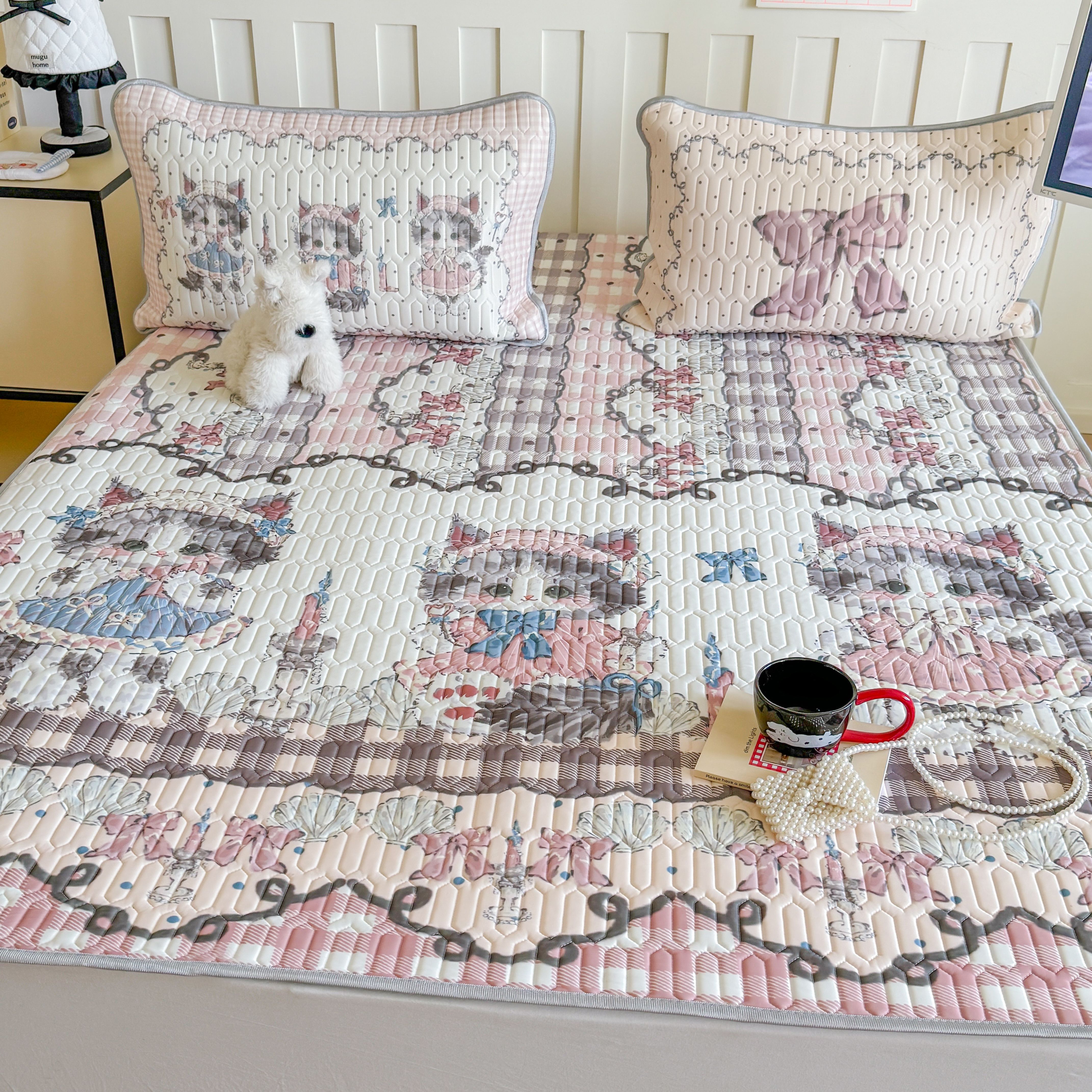 商品名称:顾里家纺 2026新款洛丽塔风乳胶席凉席席子三件套 萝莉猫咪