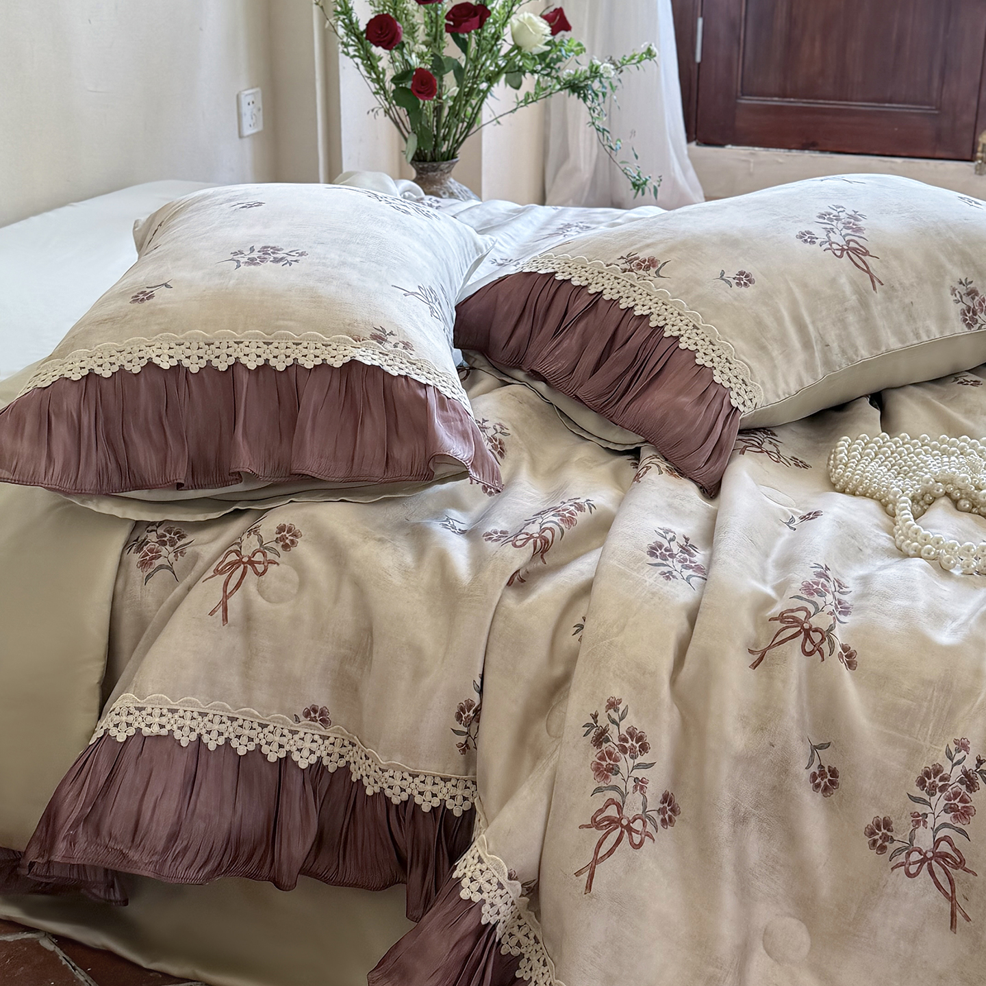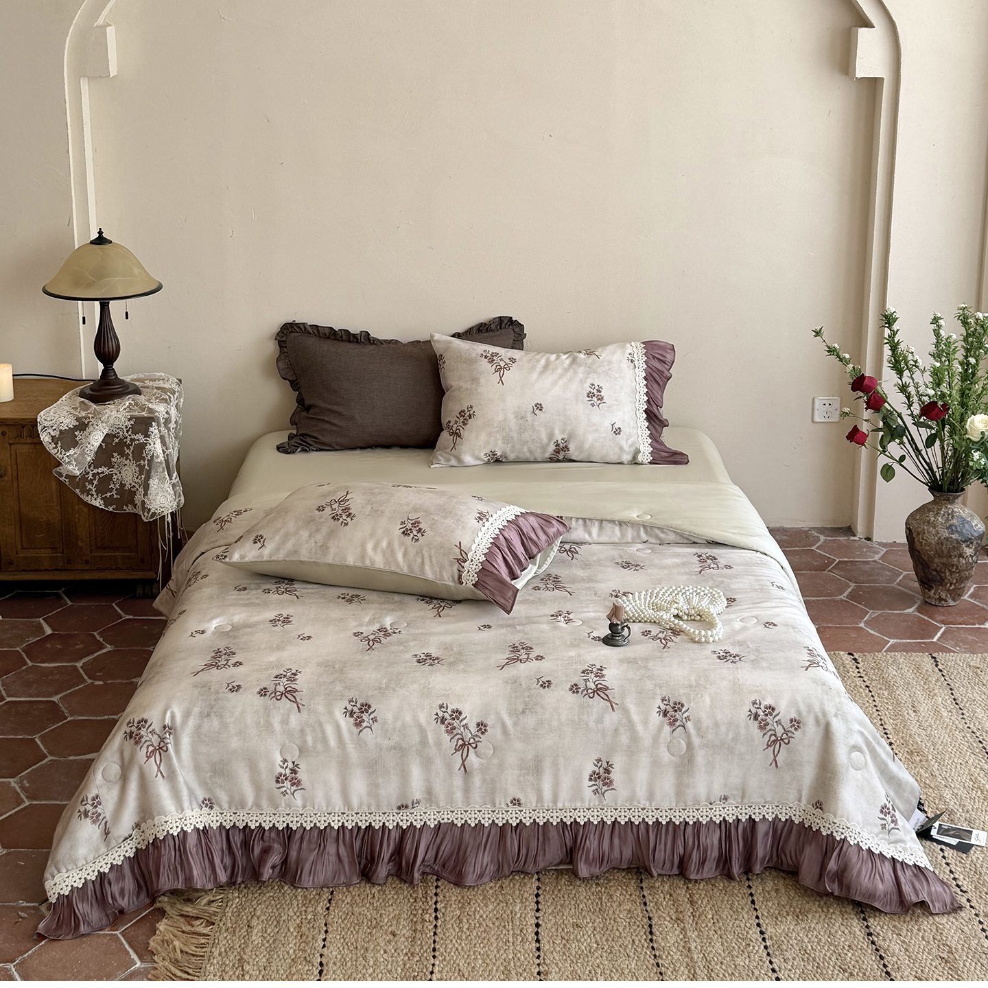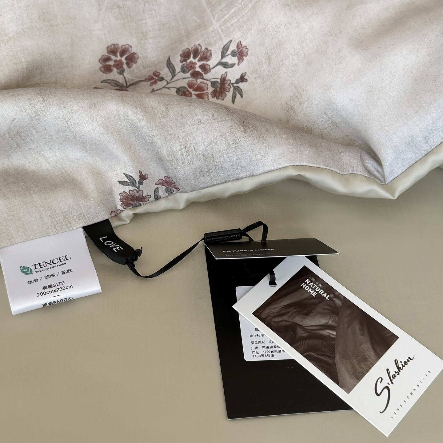 (总)佳汐蓝家纺 2026新款60支兰精天丝夏被四件套,半糖,奶霜可可,鸢尾