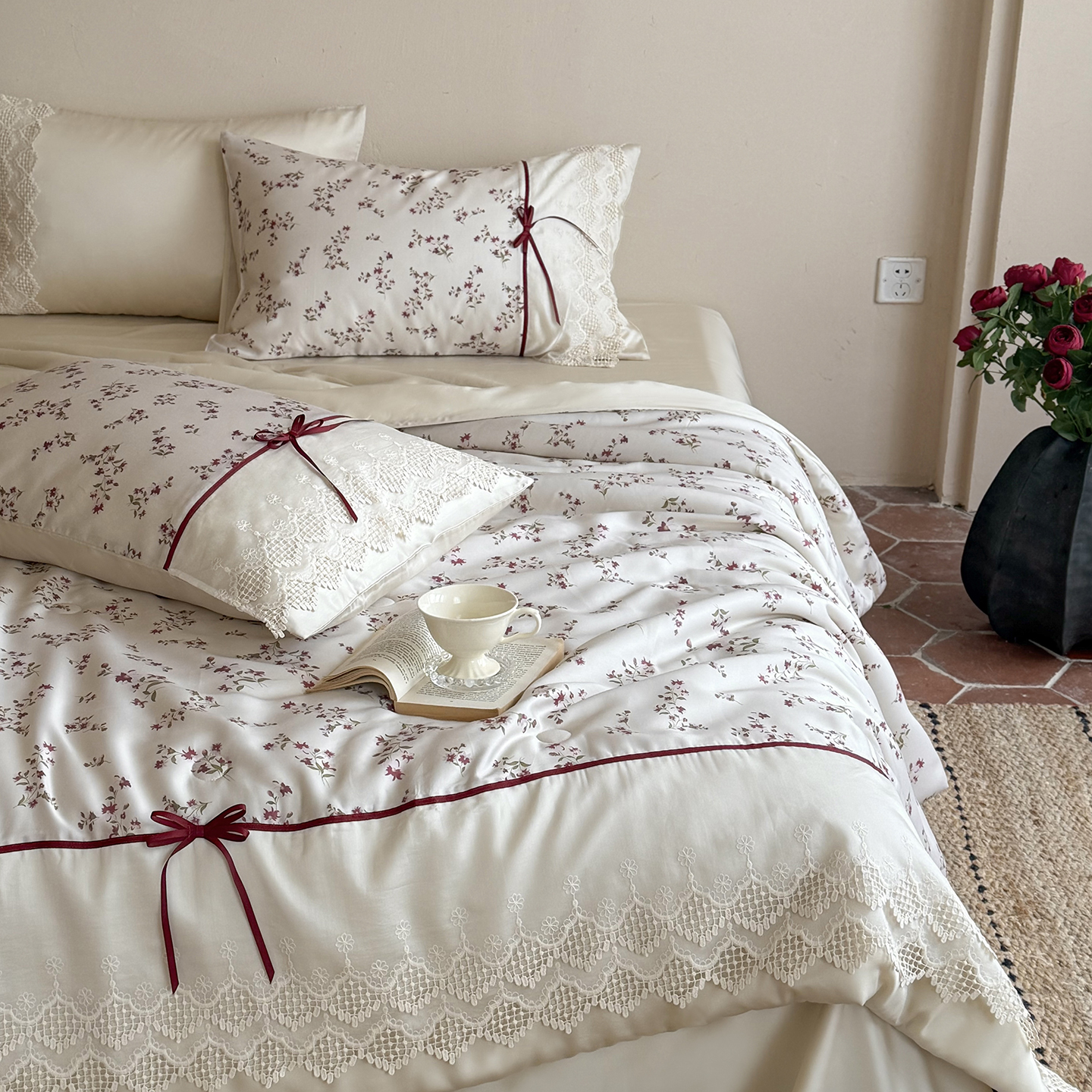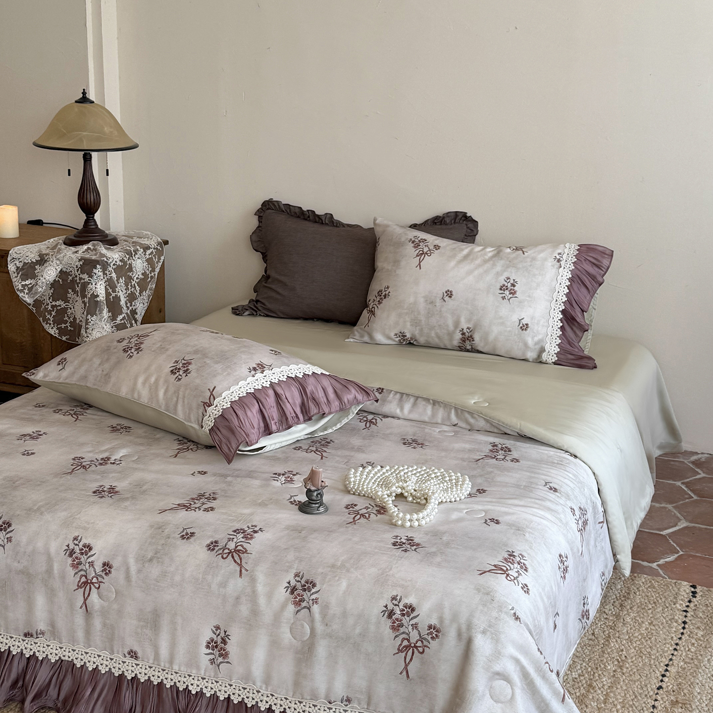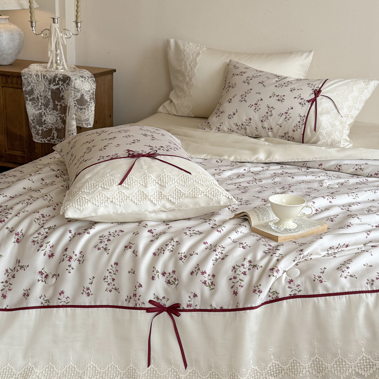 (总)佳汐蓝家纺 2026新款60支兰精天丝夏被四件套,半糖,奶霜可可,鸢尾