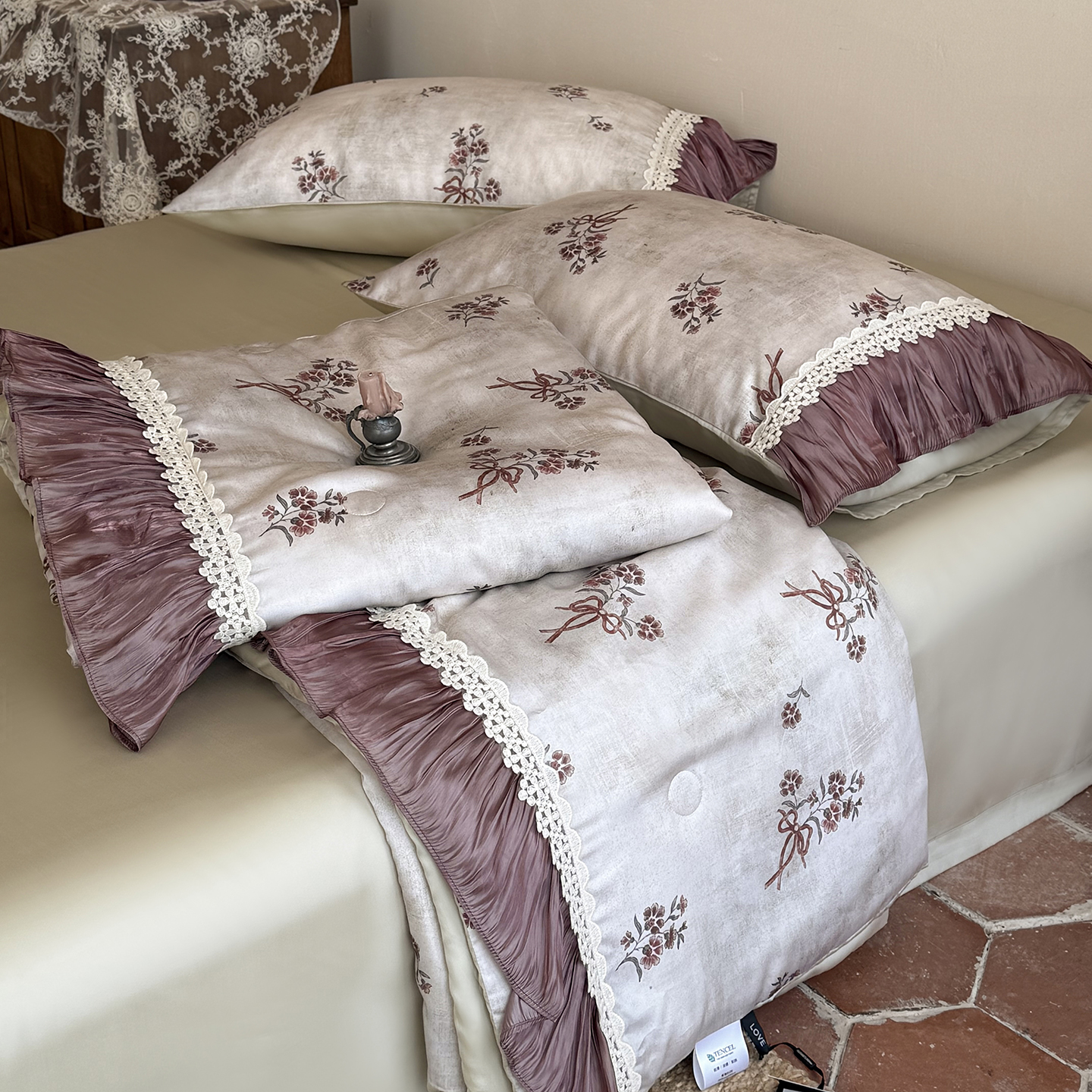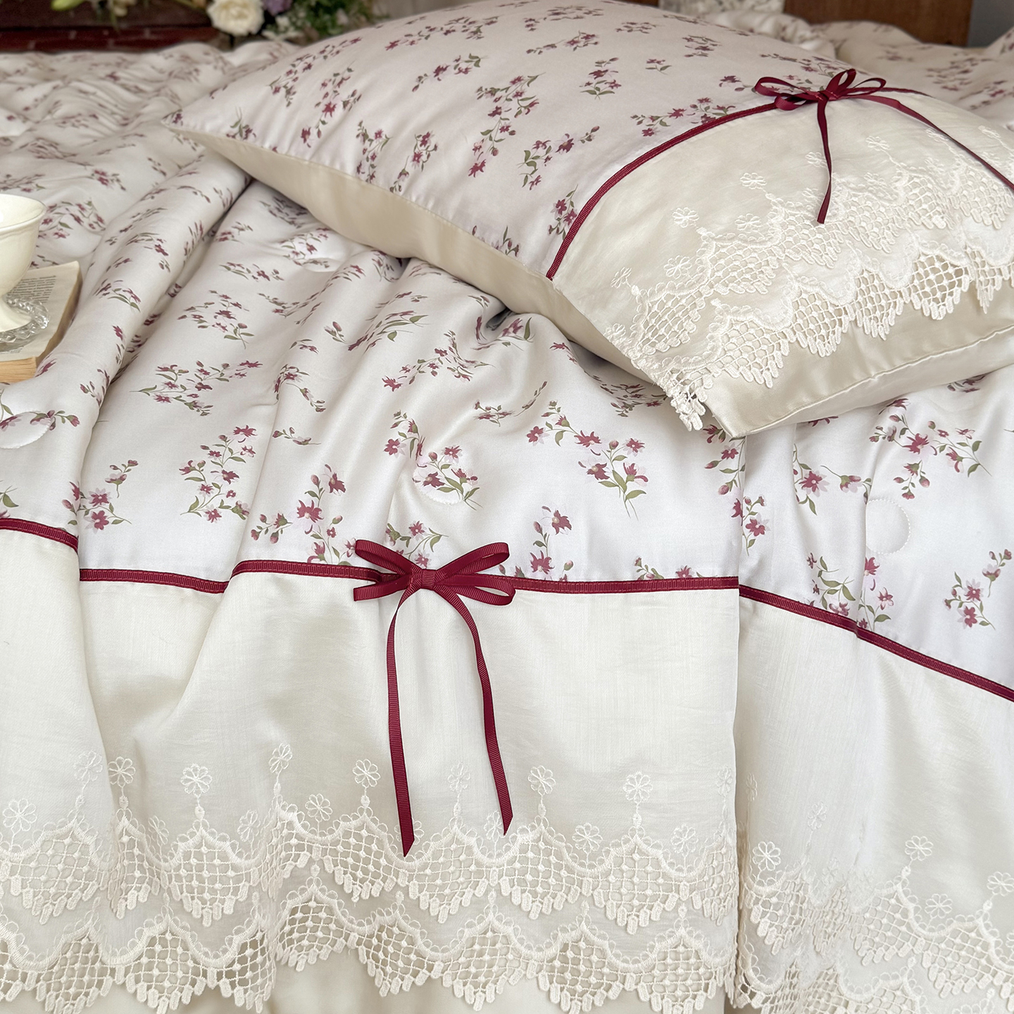 (总)佳汐蓝家纺 2026新款高精密缎面蕾丝贴布绣法式浪漫邂逅中式喜庆四件套,爱玛诗,诺言,情意浓浓,唯美