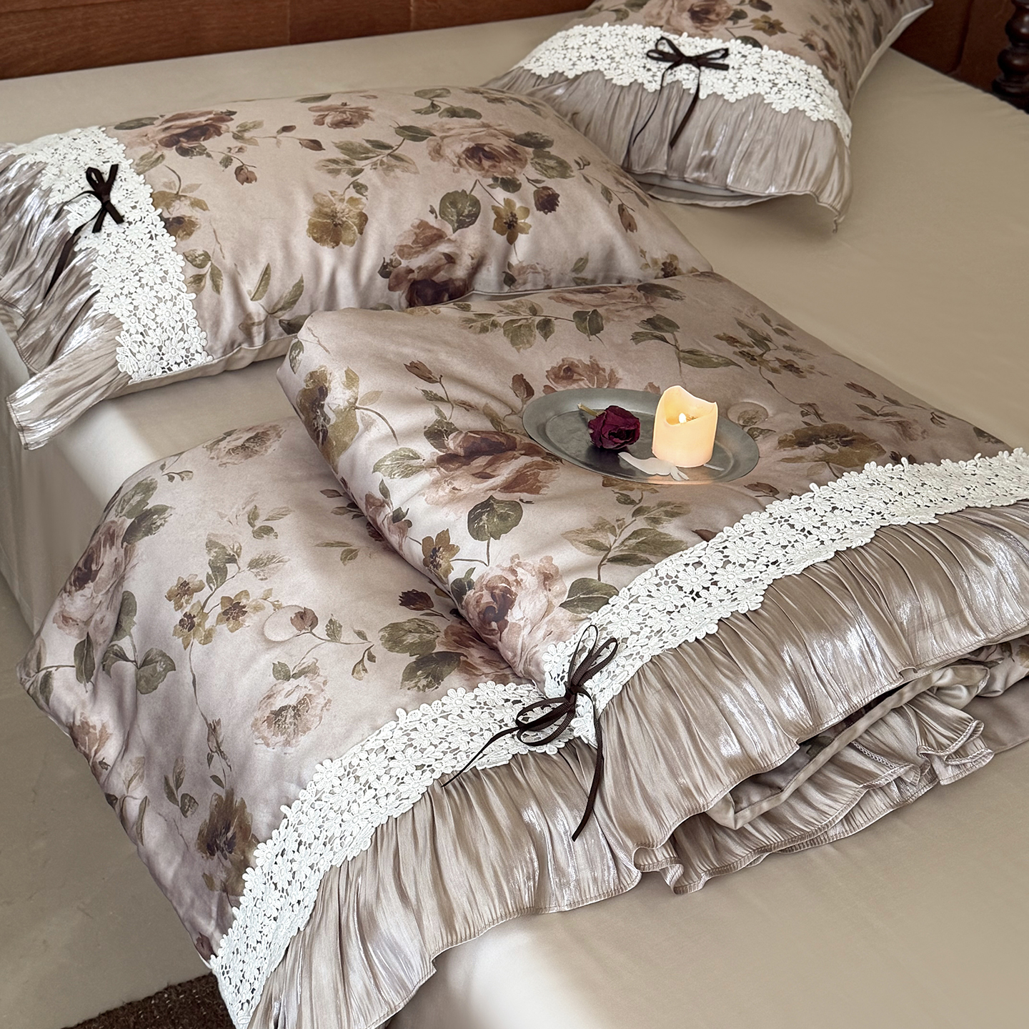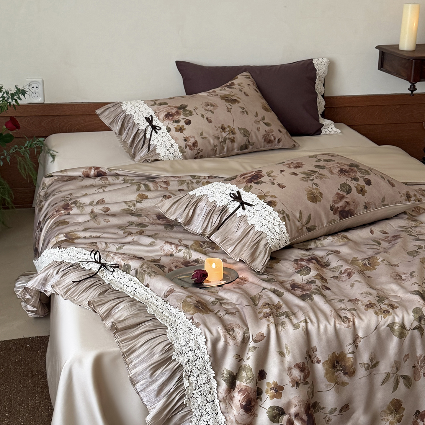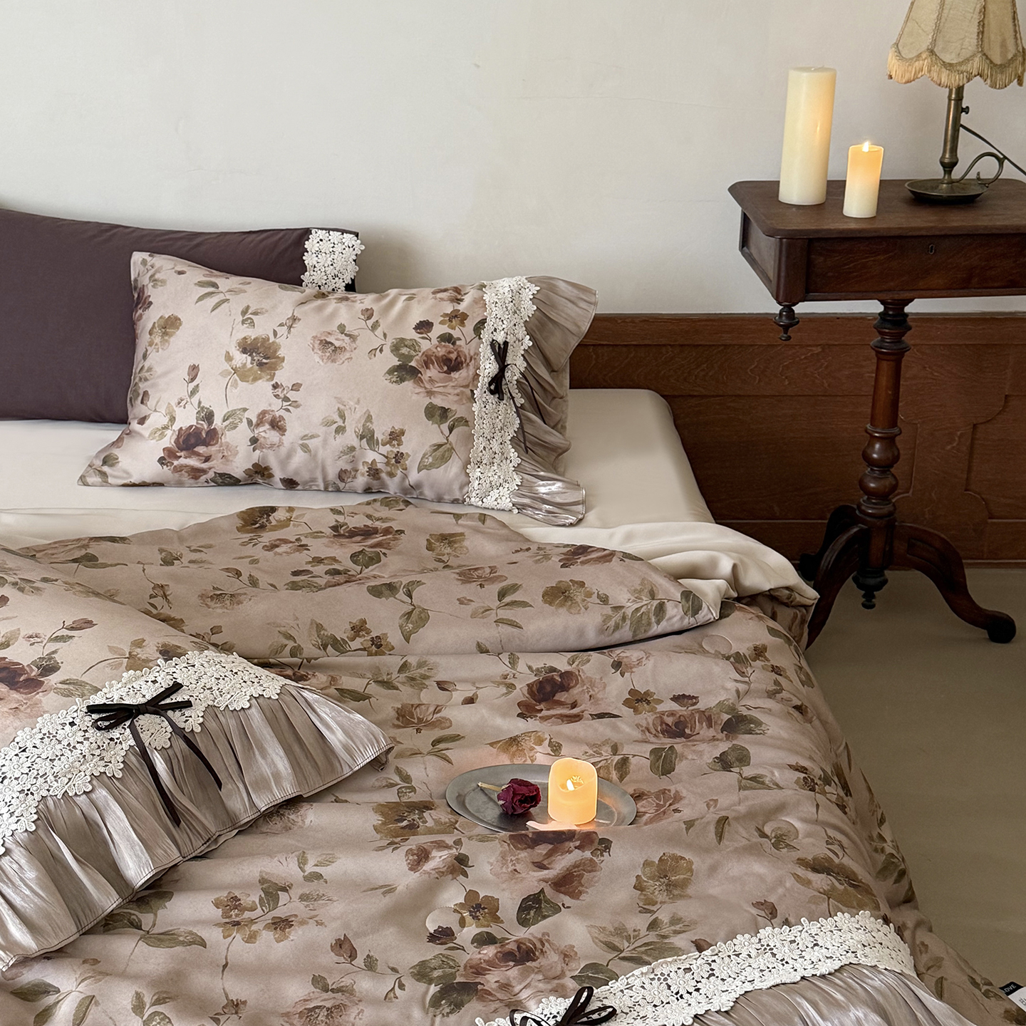 (总)佳汐蓝家纺 2026新款春夏100支全棉复古风数码印花四件套--罗曼花园,罗曼花园