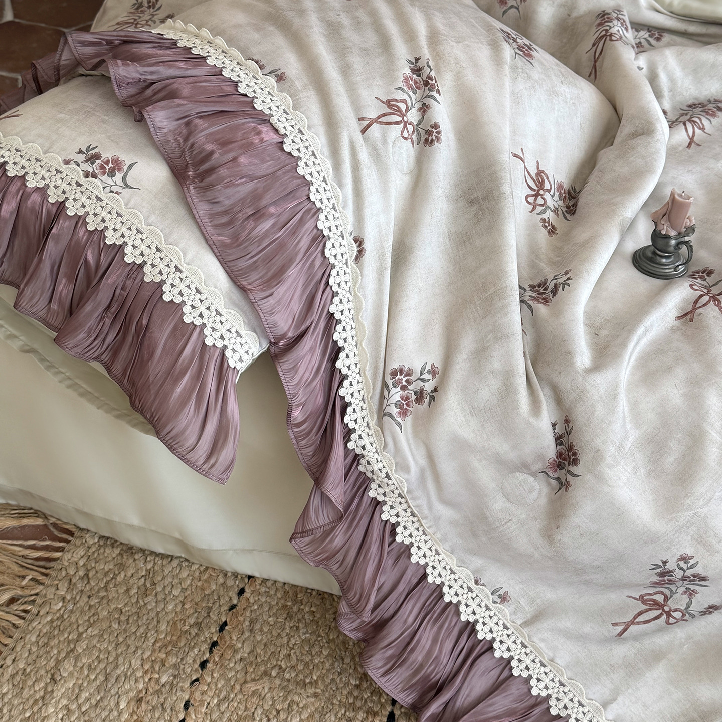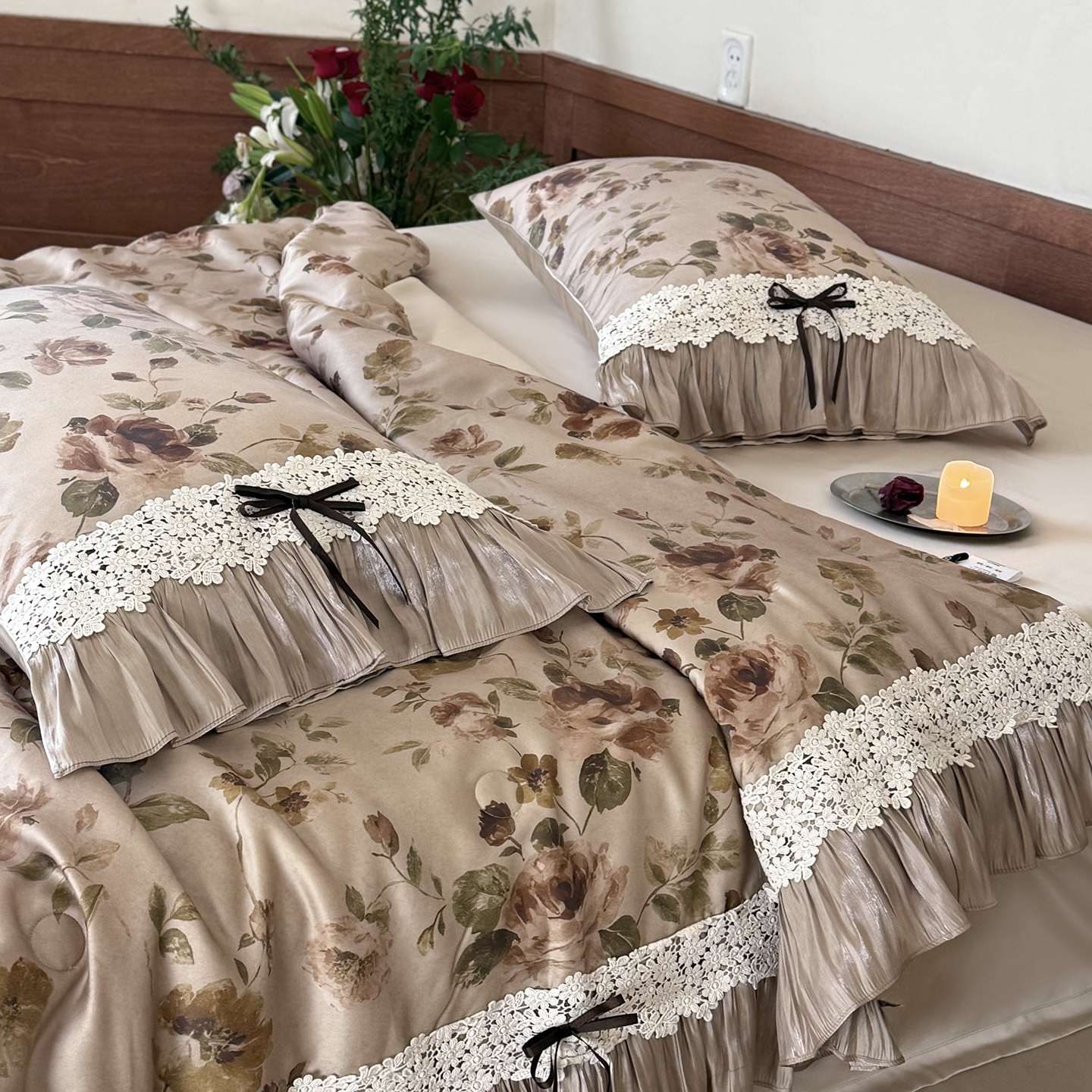 (总)佳汐蓝家纺 2026新款春夏棉麻新品印花+流光纱四件套-春缇玫瑰,春缇玫瑰