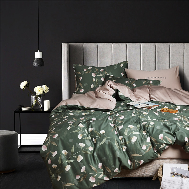 (总)优然居2020新款100支婴儿暖绒棉轻奢风刺绣四件套,大地黄加藏青,复古咖青,轻奢粉灰,霜绿大地色,霜绿复古色
