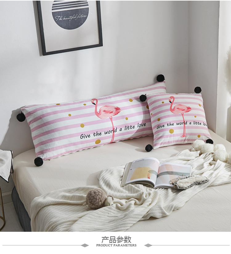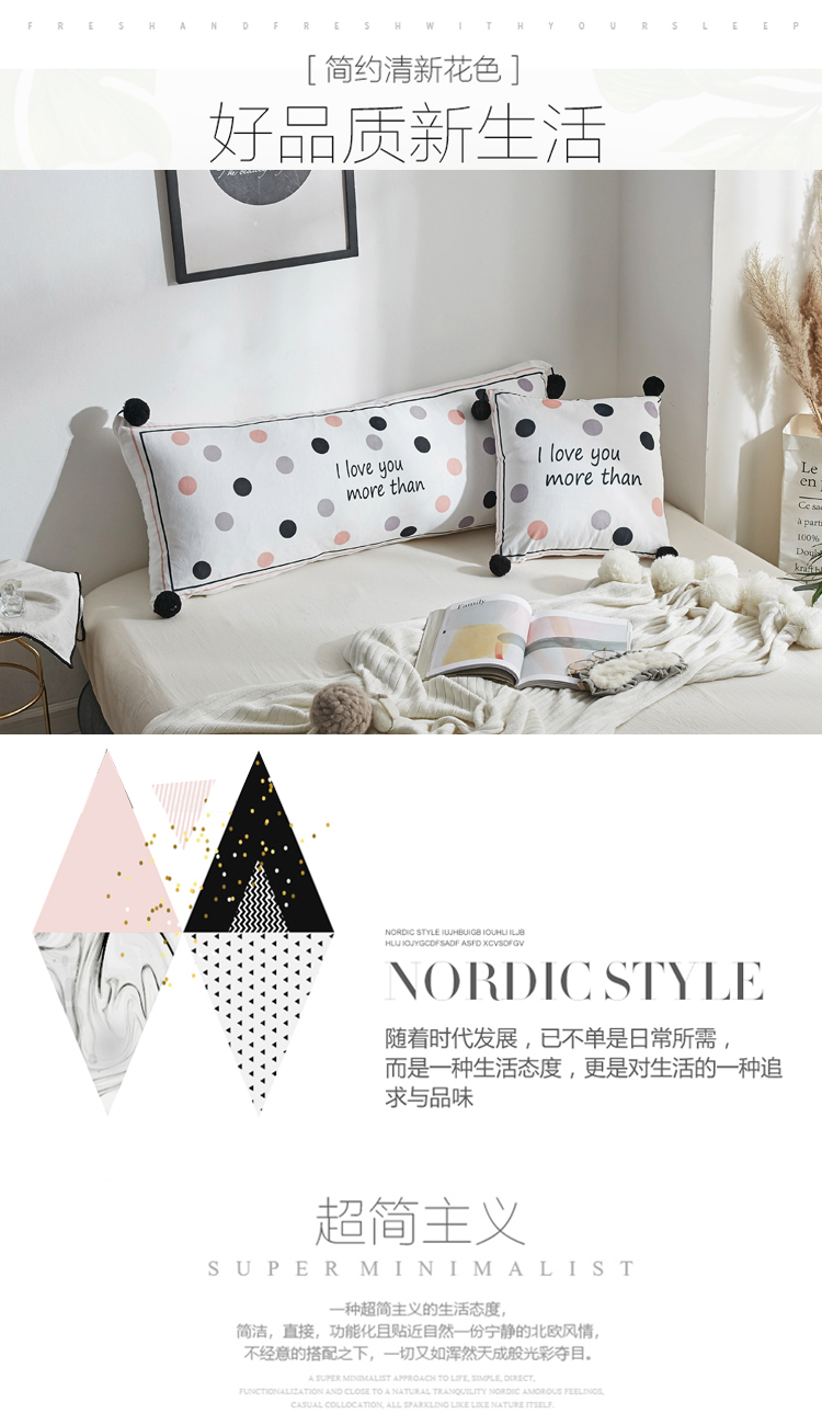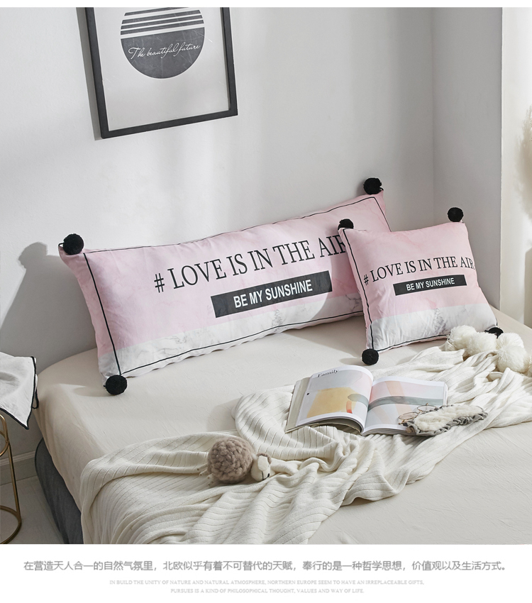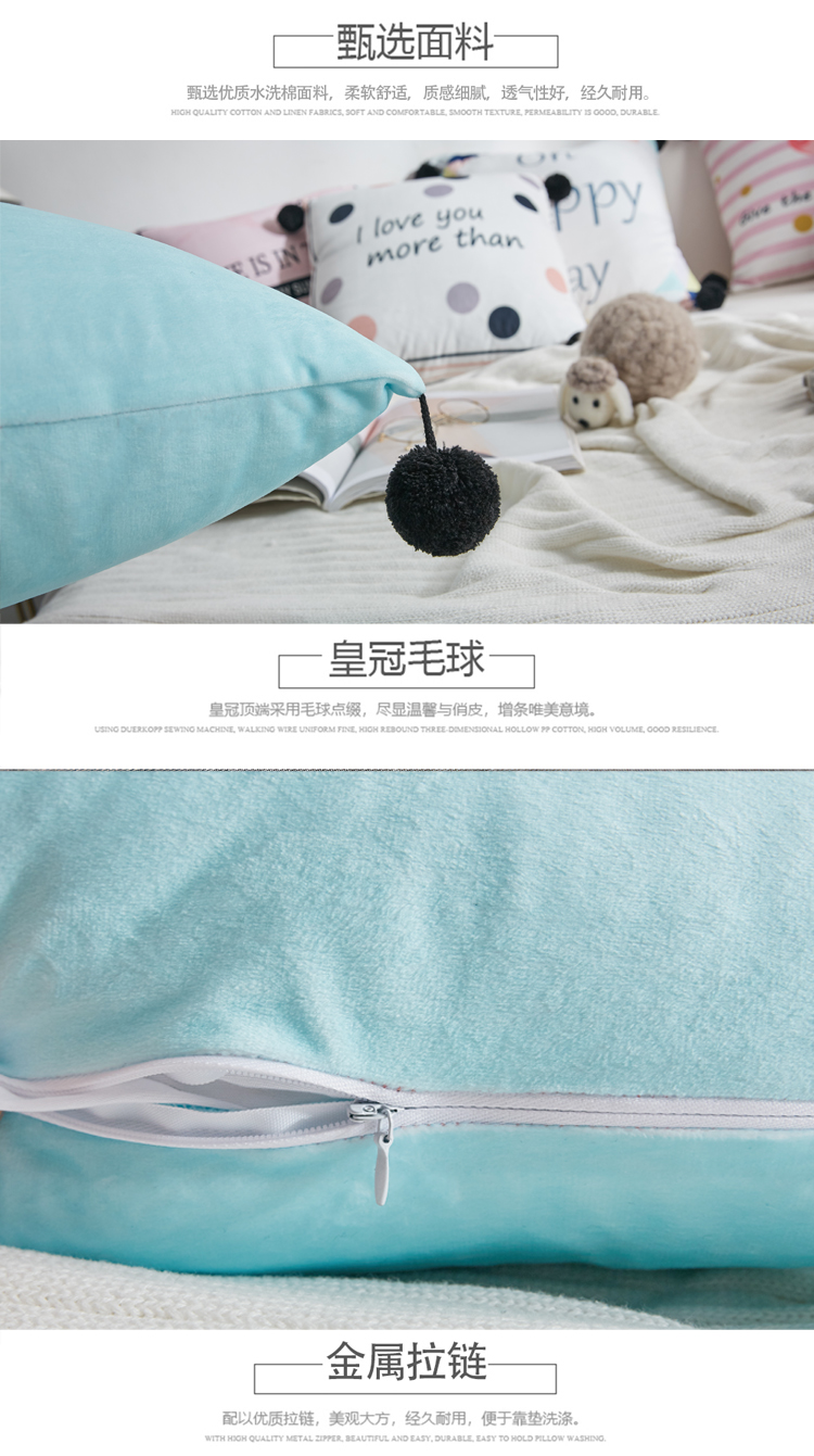 希诺ins毛球款双面数码印花水晶绒床头大靠垫可拆洗 粉白拼接