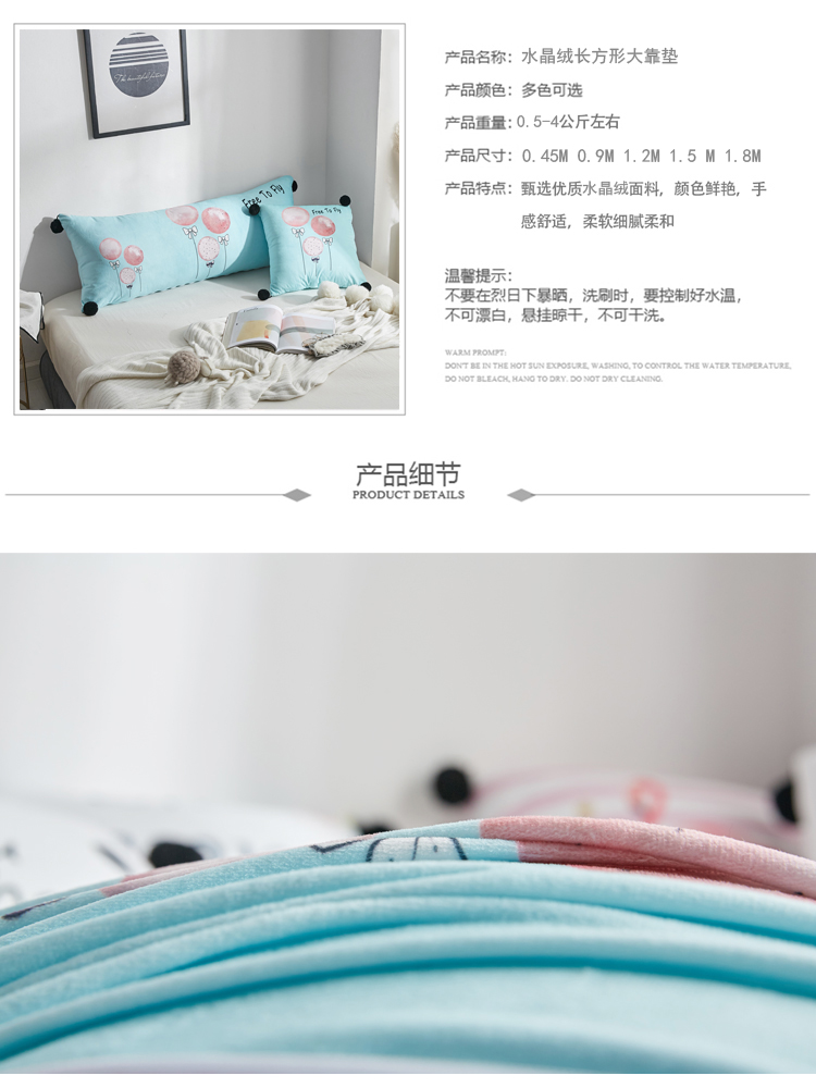 商品名称:希诺ins毛球款双面数码印花水晶绒床头大靠垫可拆洗 粉白拼接