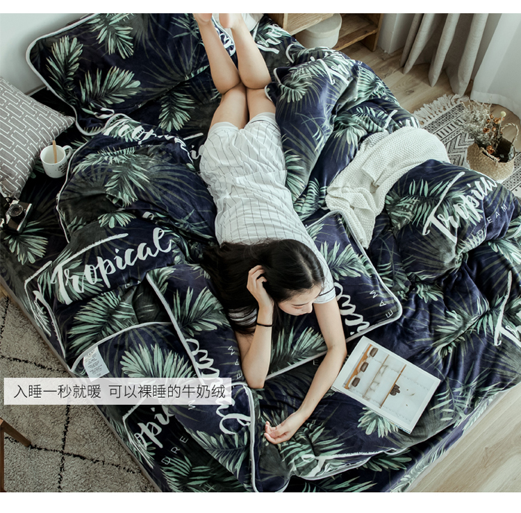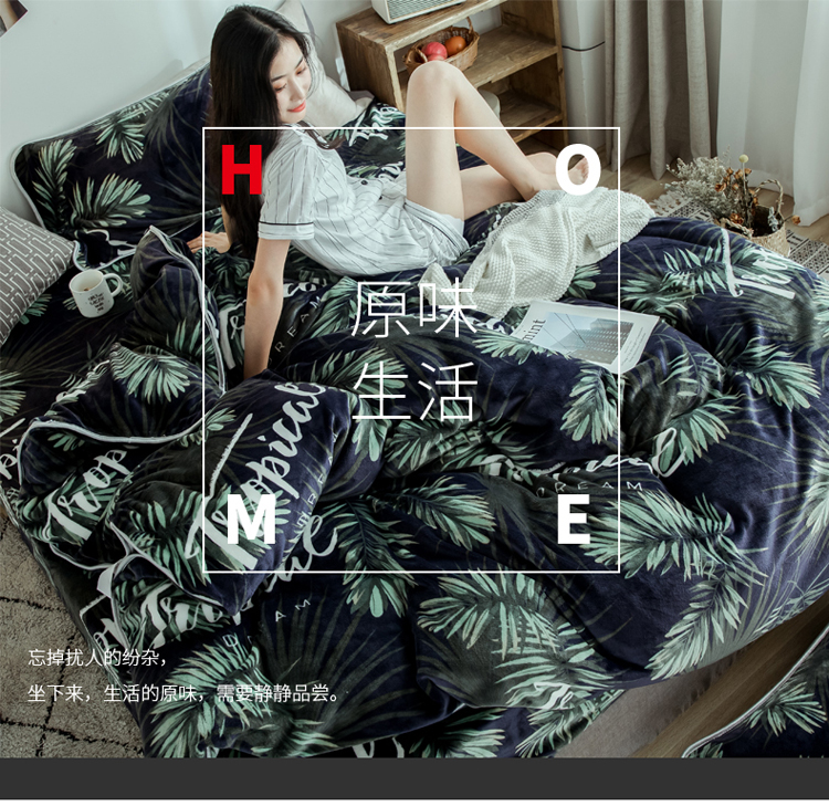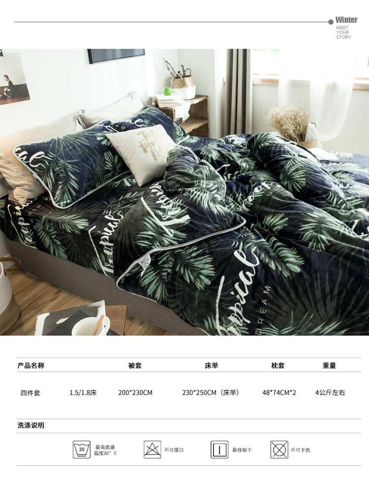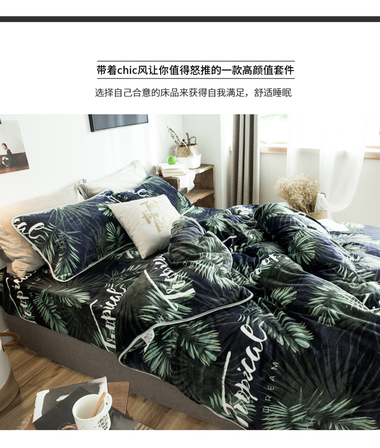 商品名称:昔可家纺 2018新款牛奶绒四件套 热带植物