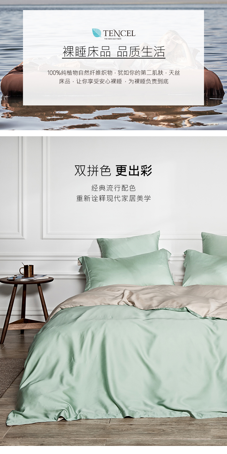 商品名称:涞澳 2019新款60天丝双拼套件 青灰