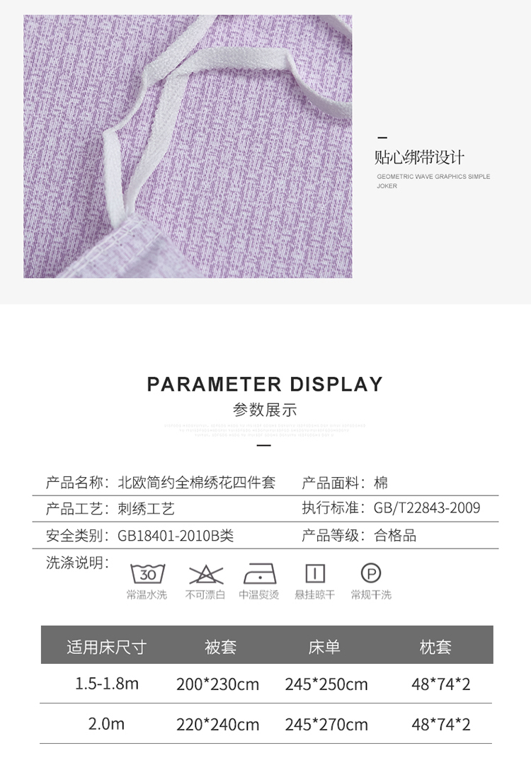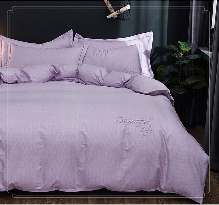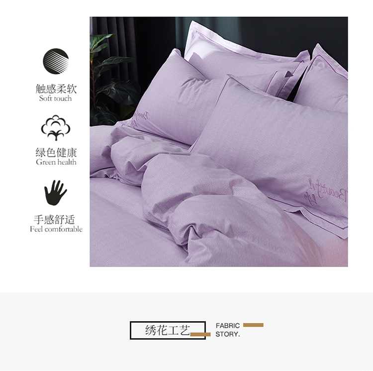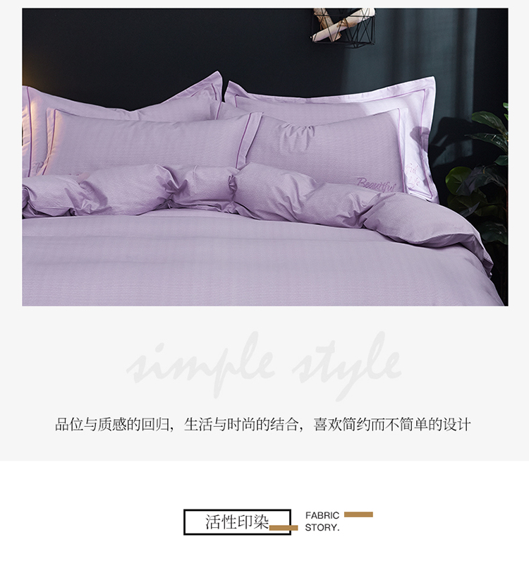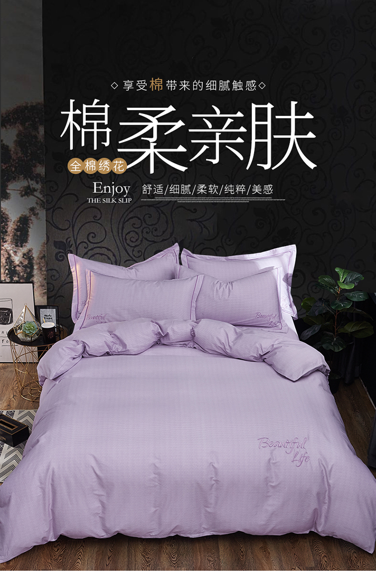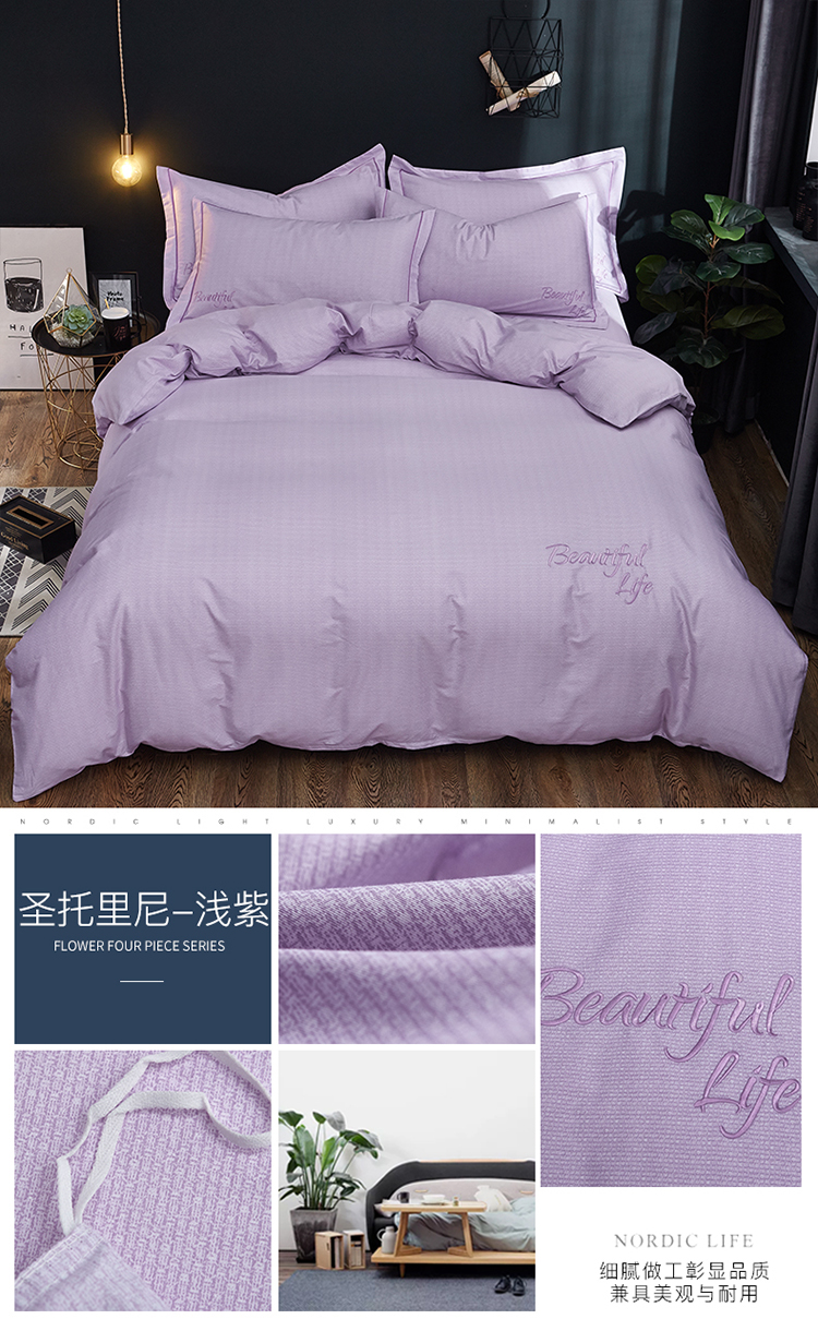 商品名称:雲归梦 北欧简约全棉绣花四件套 圣托里尼-浅紫