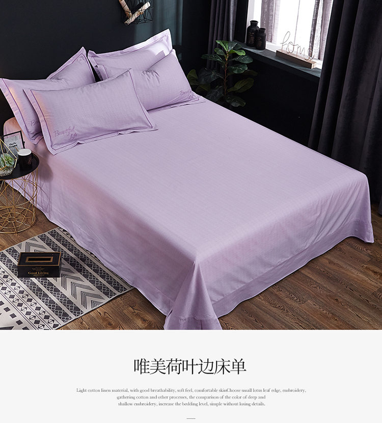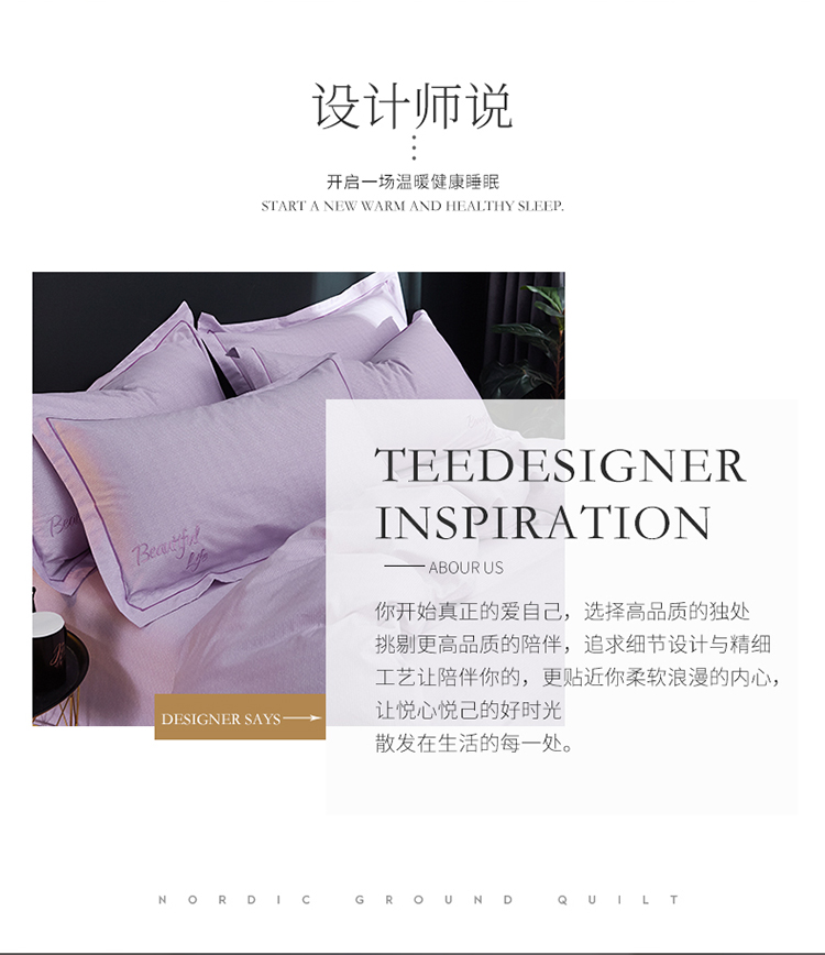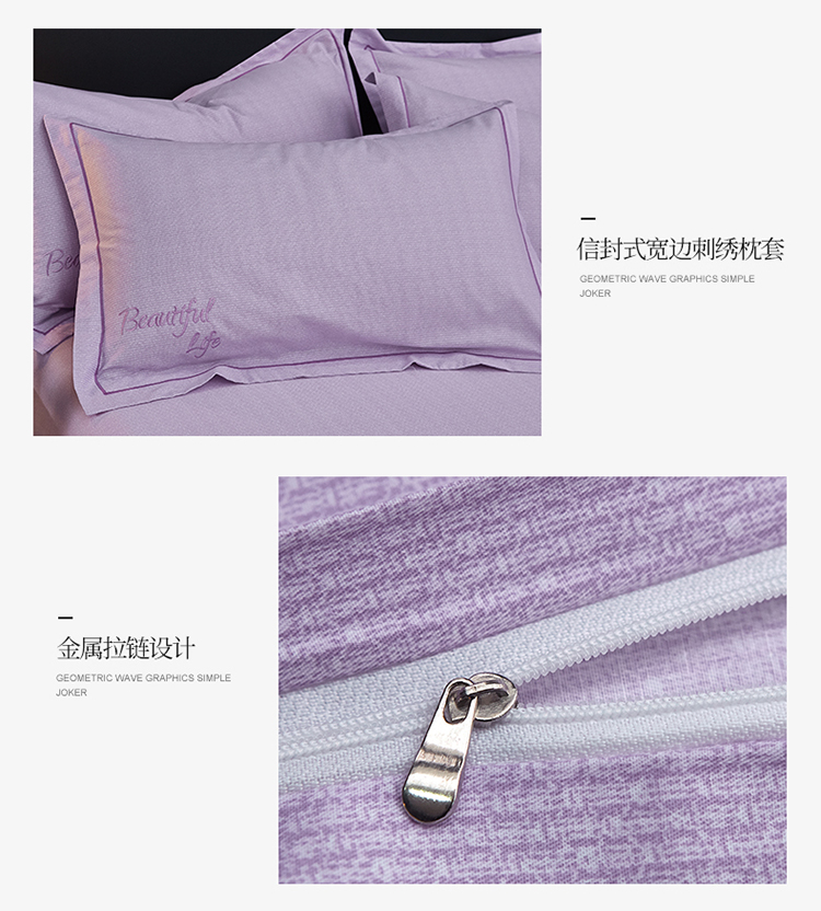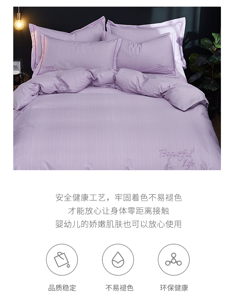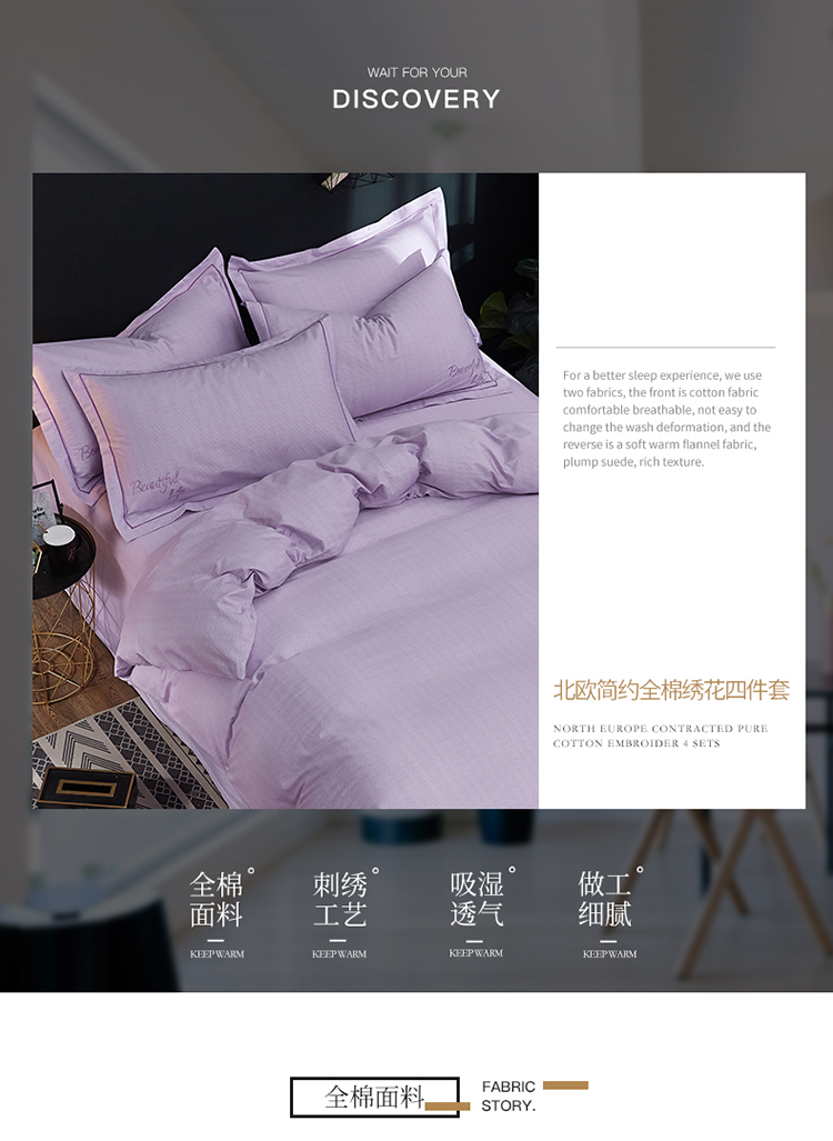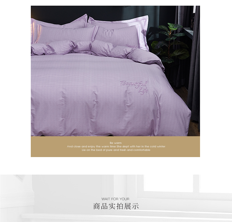 商品名称:雲归梦 北欧简约全棉绣花四件套 圣托里尼-浅紫