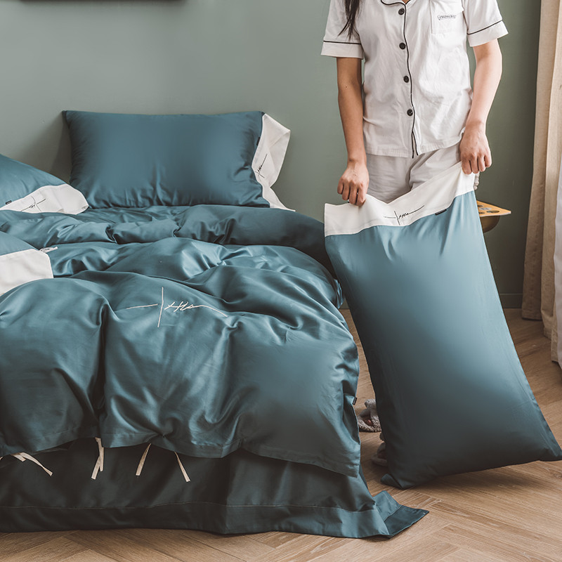商品名称:狠狠爱 60支长绒棉绣花摩登系列套件 宝蓝色