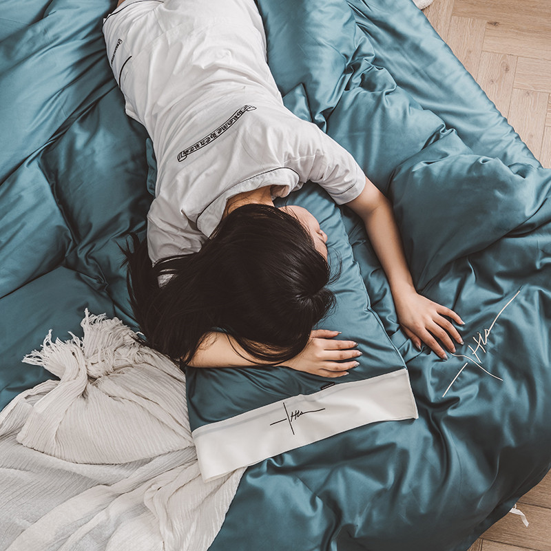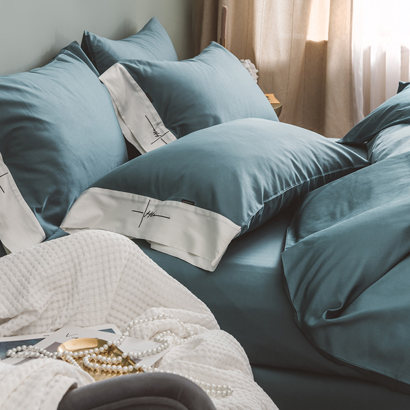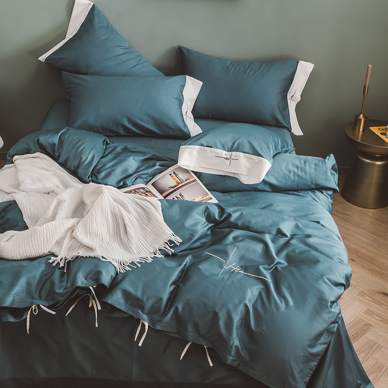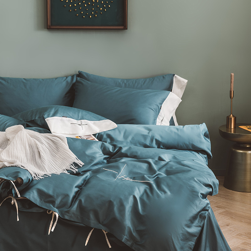狠狠爱 60支长绒棉绣花摩登系列套件 宝蓝色