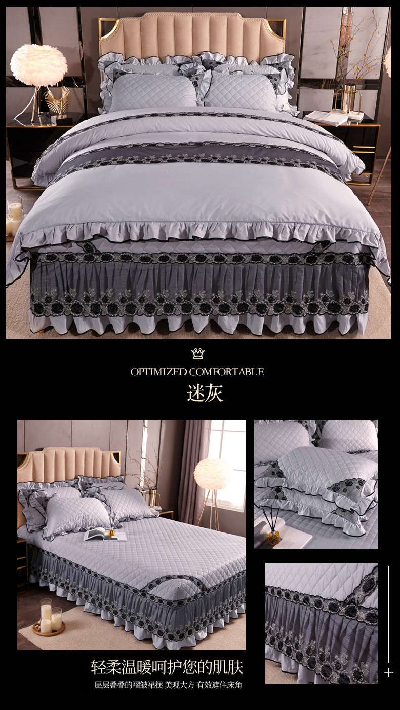 商品名称:时尚芭莎宫廷风黑色刺绣蕾丝款全棉133*72夹棉四件套迷灰