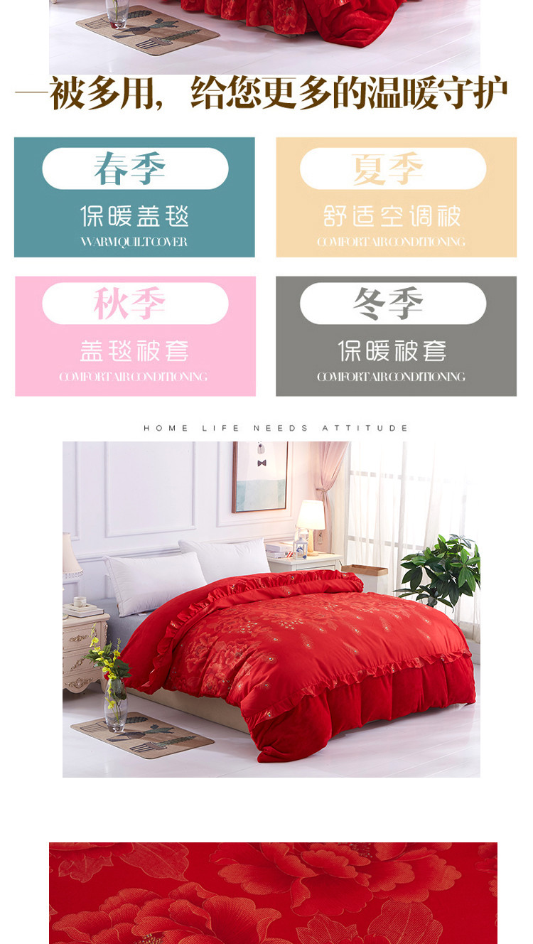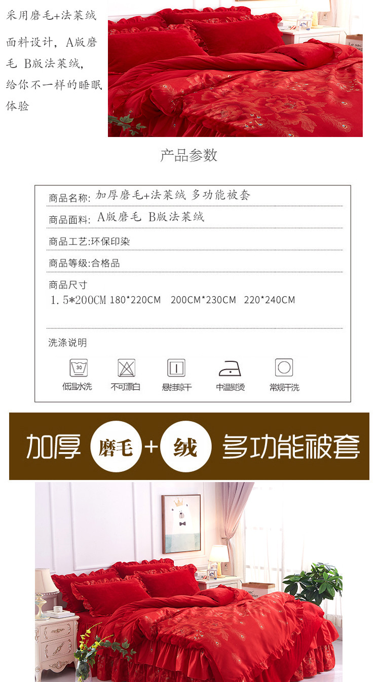 商品名称:铠畅 2019韩版法莱绒床裙单被套 花好月圆