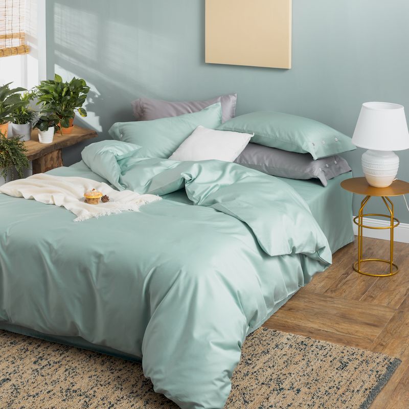 (总)涞澳家纺 2026新款全棉纯棉水洗棉纯色花边款四件套-珠若,珠若-米白,珠若-浅灰,珠若-浅绿,珠若-浅玉