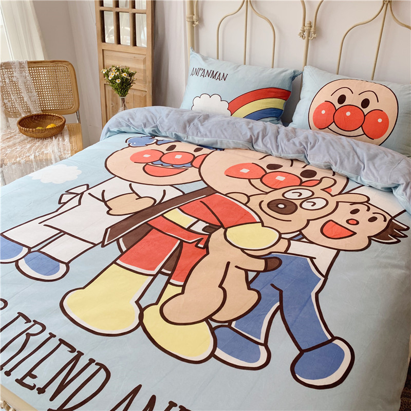 昔可 2019新款设计师款韩国宝宝绒大版四件套 彩虹面包