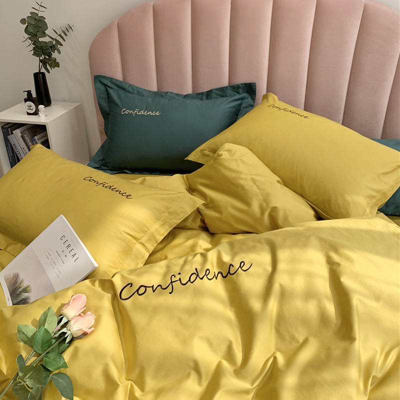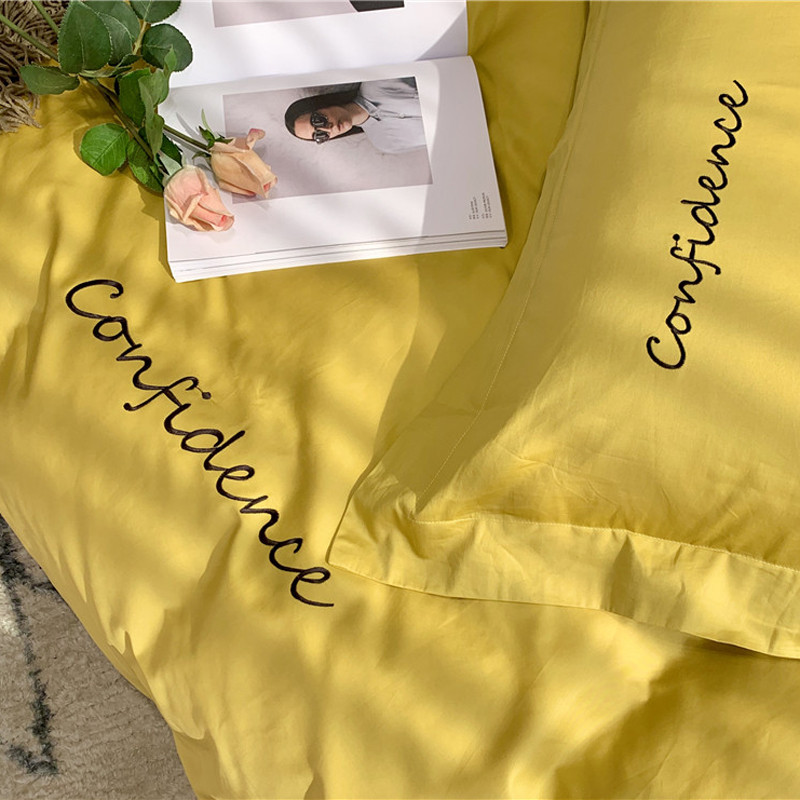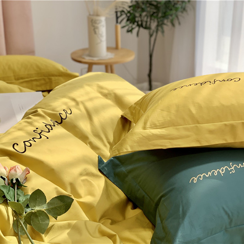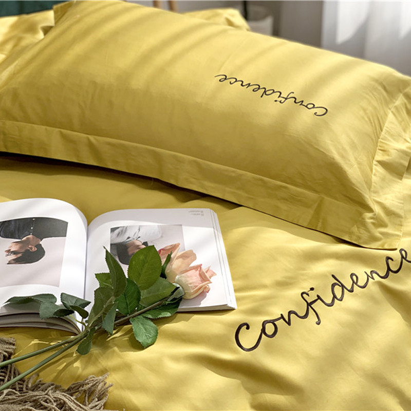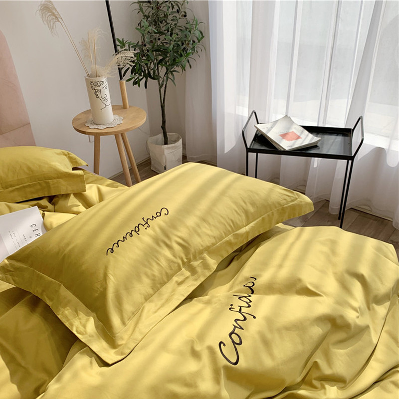 柚子家纺 2020新款100支贡缎澳棉绣花四件套拾色-明黄