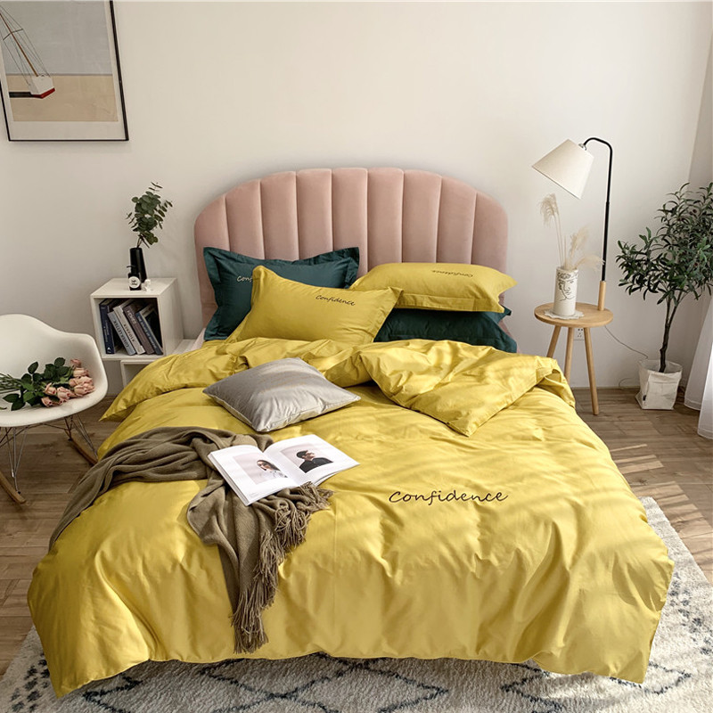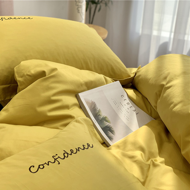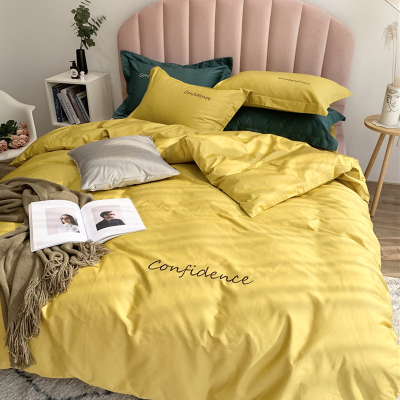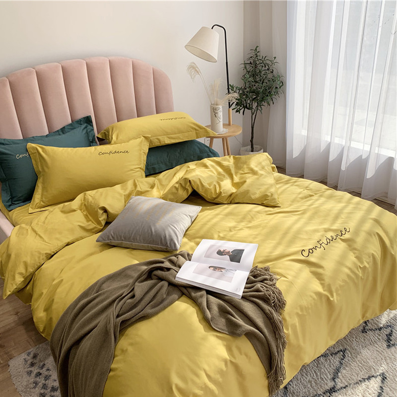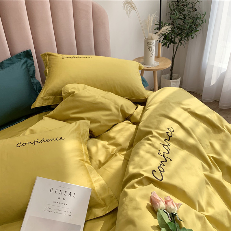柚子家纺 2020新款100支贡缎澳棉绣花四件套拾色-明黄