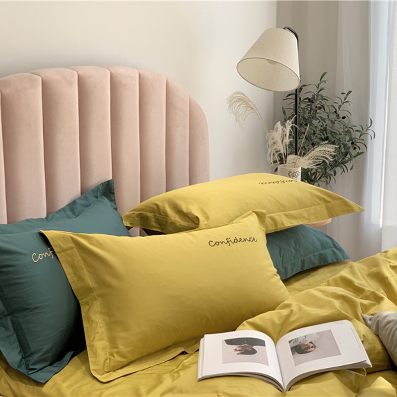 商品名称:柚子家纺 2020新款100支贡缎澳棉绣花四件套拾色-明黄