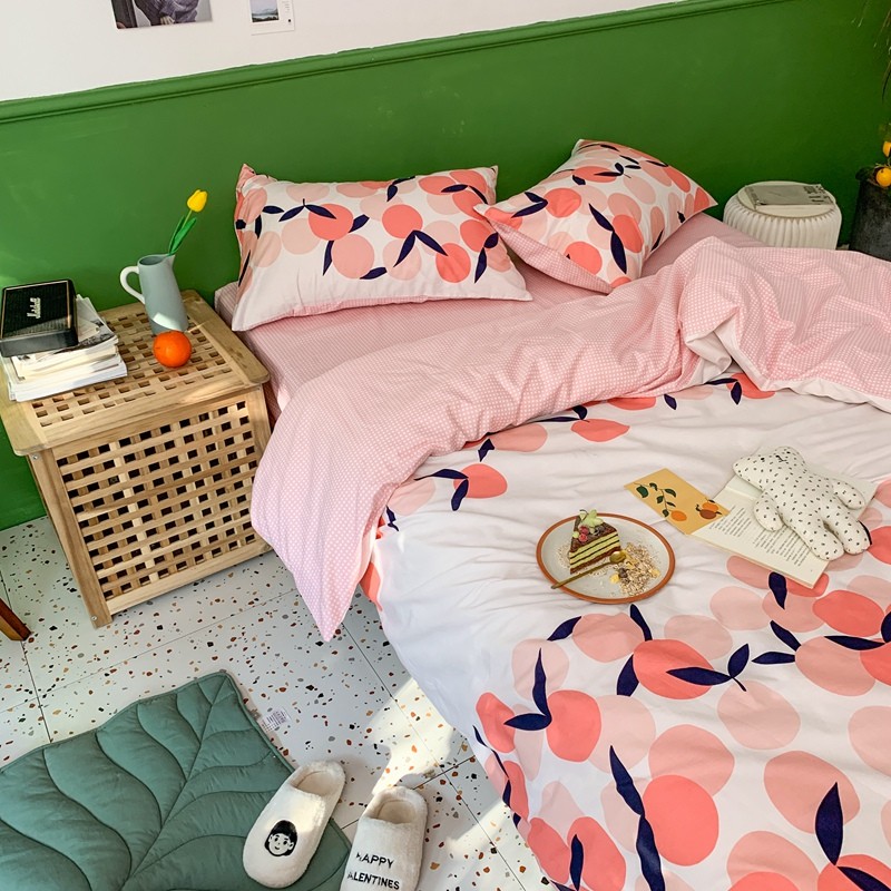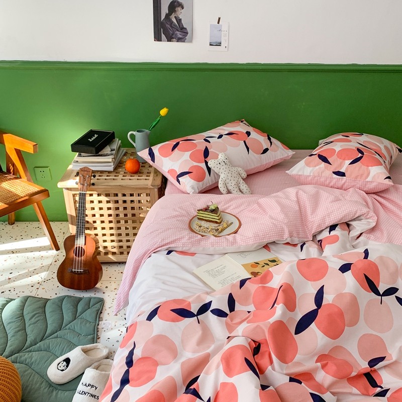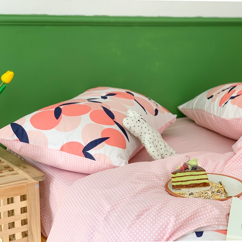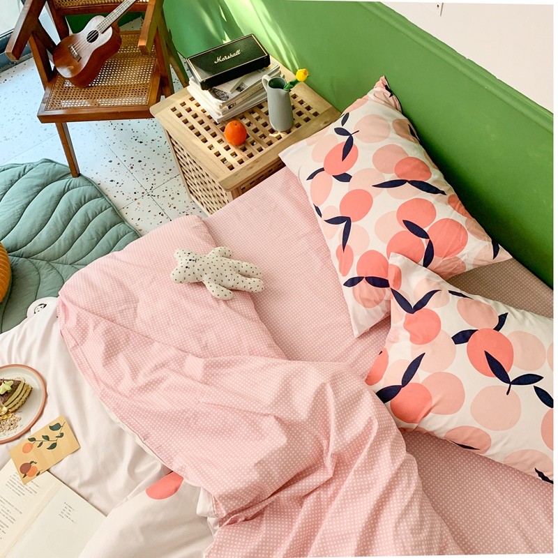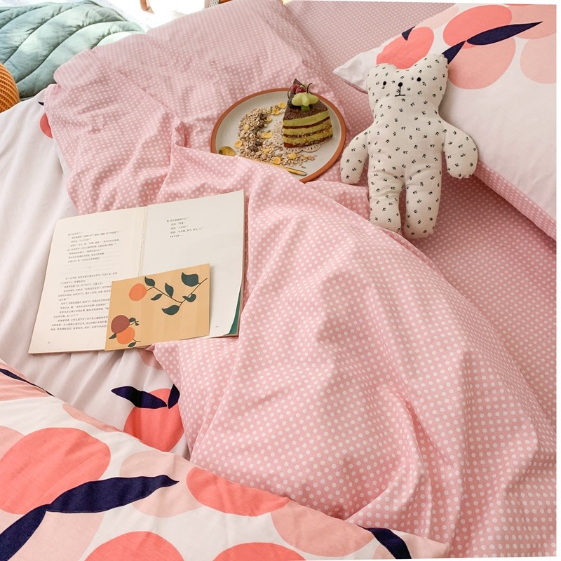 时年家纺 2020新款全棉四件套小可爱系列 小枇杷粉