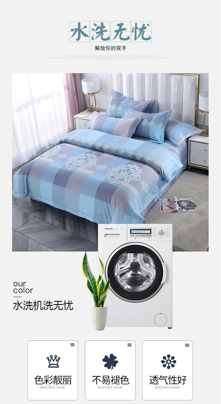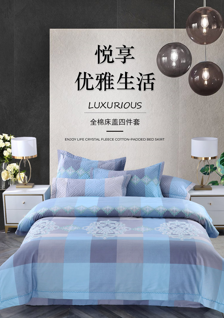 OL新款13372全棉床盖夹棉四件套活性印染居家套件兰博斯卡