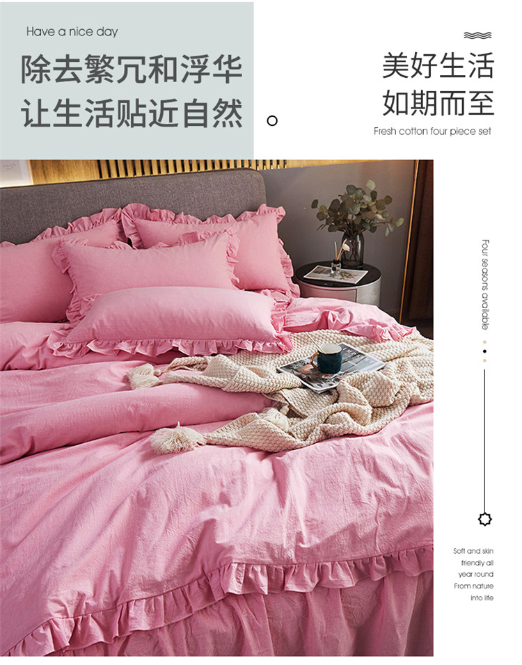 当前位置: 91家纺网 > 商品网购 > 床品套件 > 四件套 > 水洗棉四件套 > 十个点家纺 2020新款单层四件套 粉青年