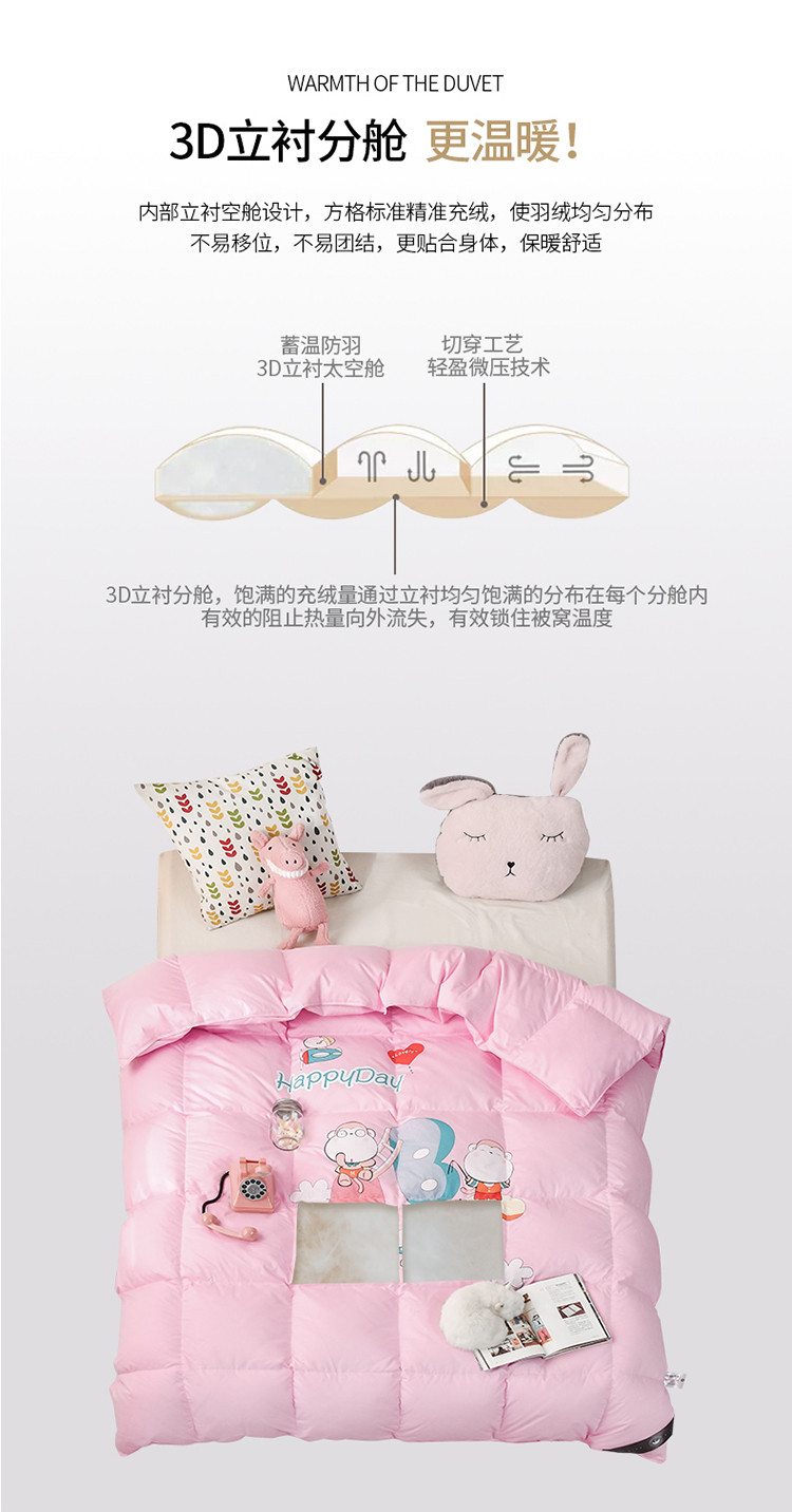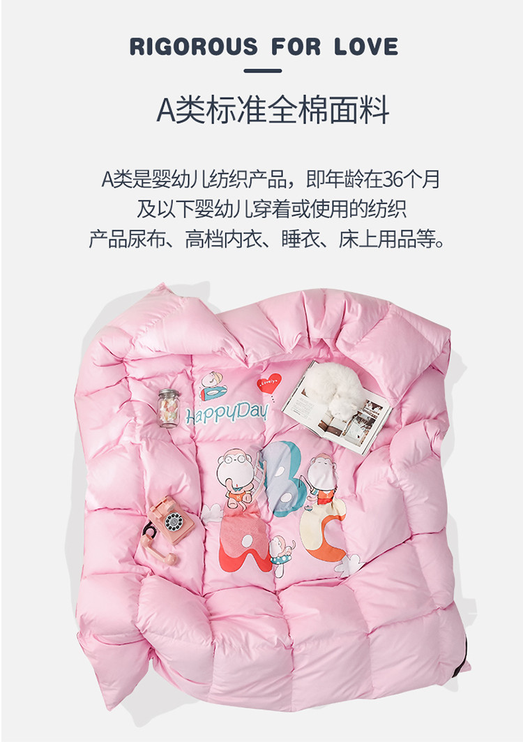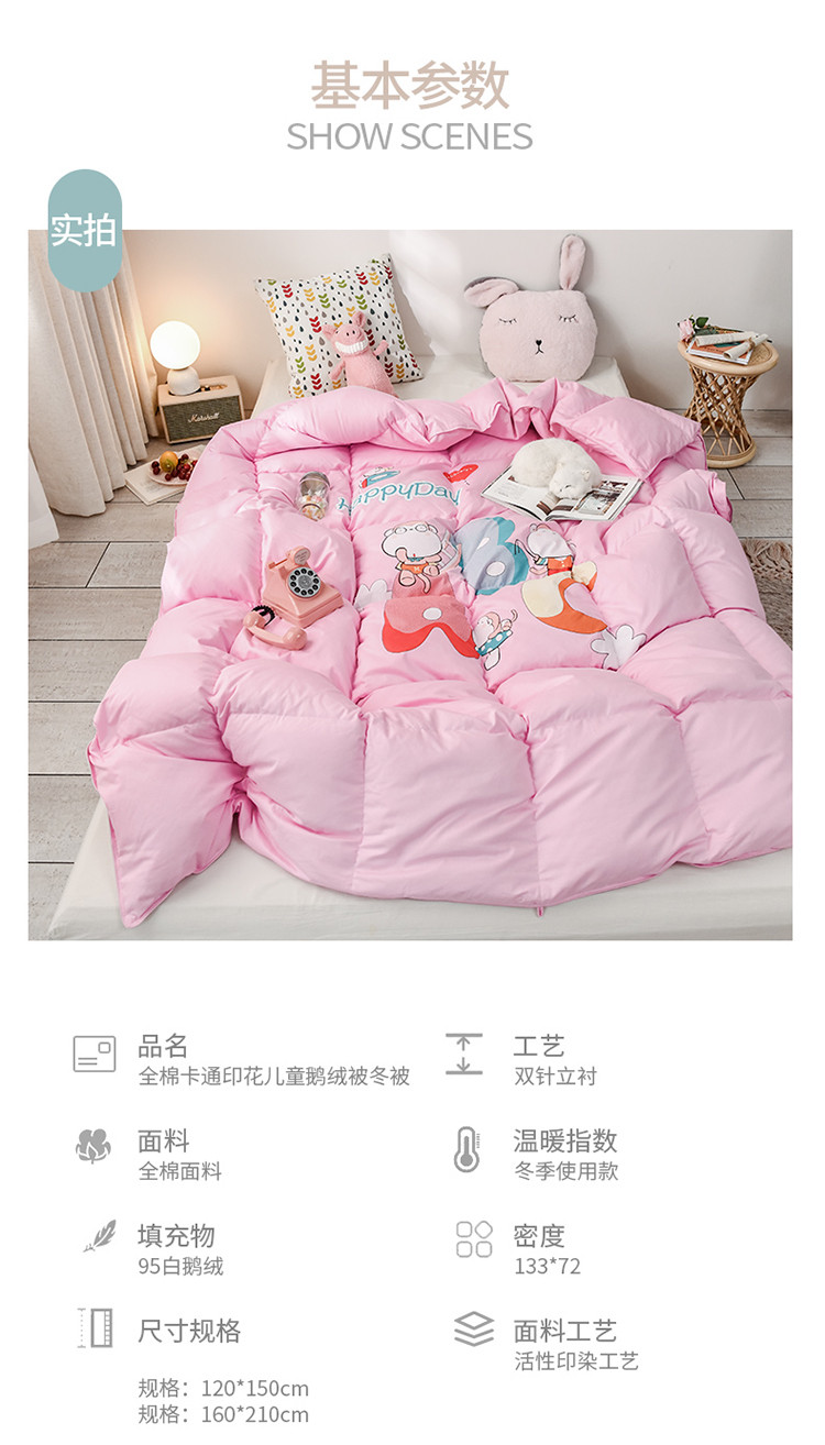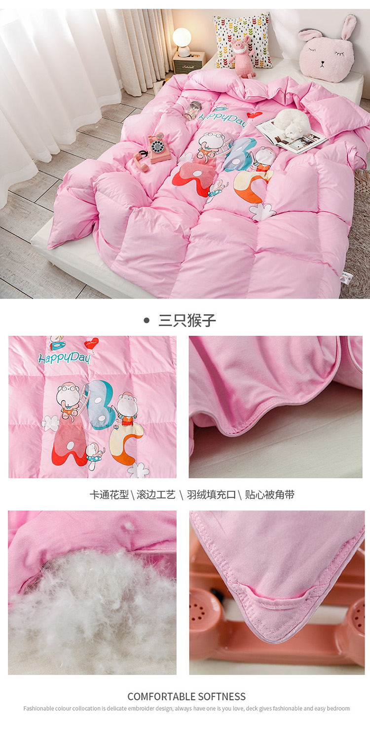 商品名称:绒研羽绒2025全棉卡通印花儿童鹅绒羽绒冬被 三只猴子
