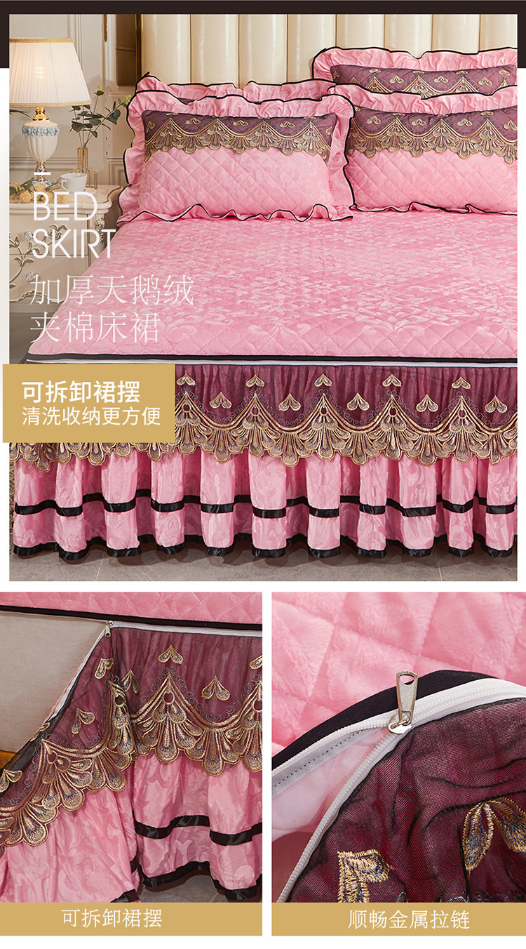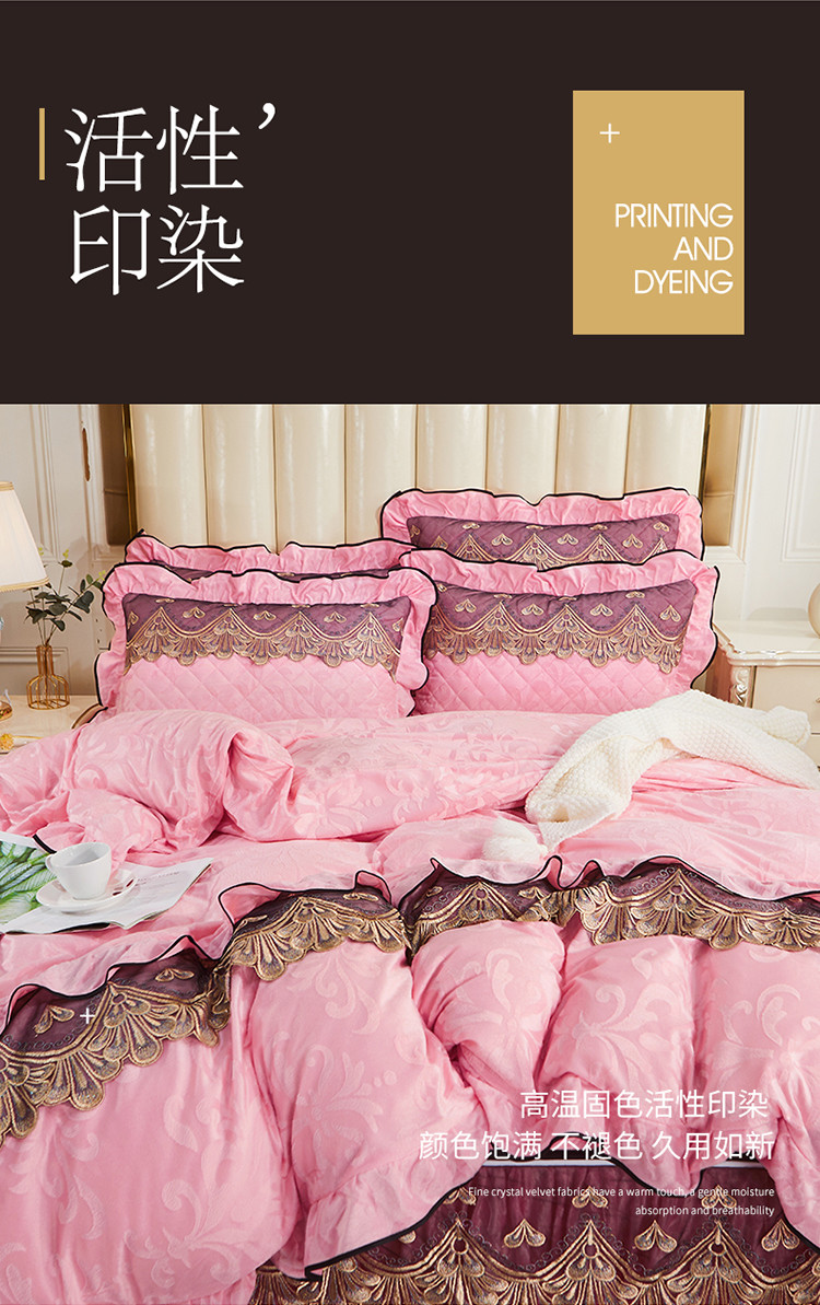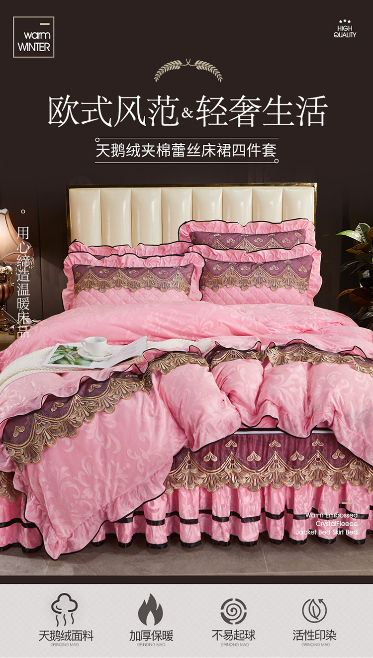 商品名称:网红馆 2025新款天鹅绒盛世佳人床裙四件套 蜜粉