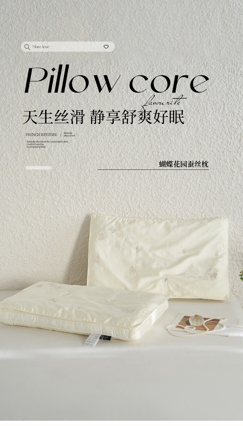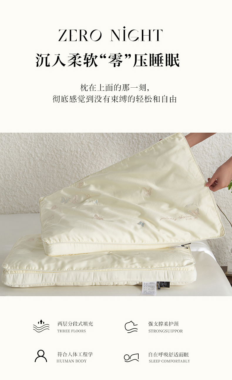 当前位置: 91家纺网 > 商品网购 > 枕头/枕芯/保健枕/颈椎枕 > 普通枕芯 > (总)2024新款五星级酒店蚕丝枕芯高端睡眠超柔软家用枕头 蝴蝶花园蚕丝枕