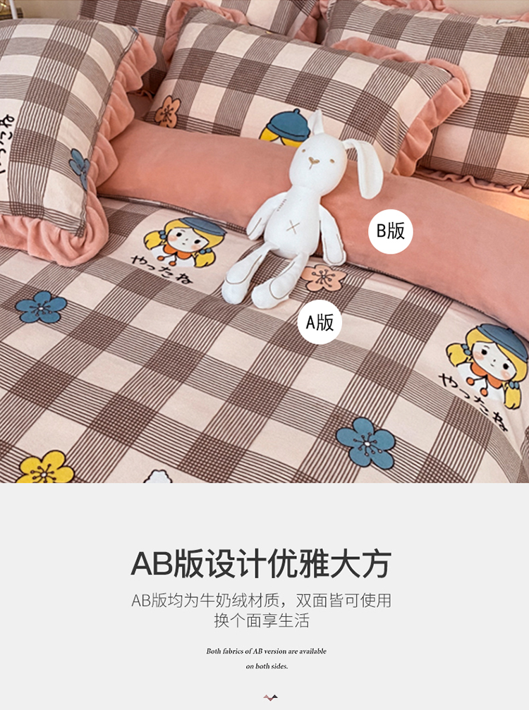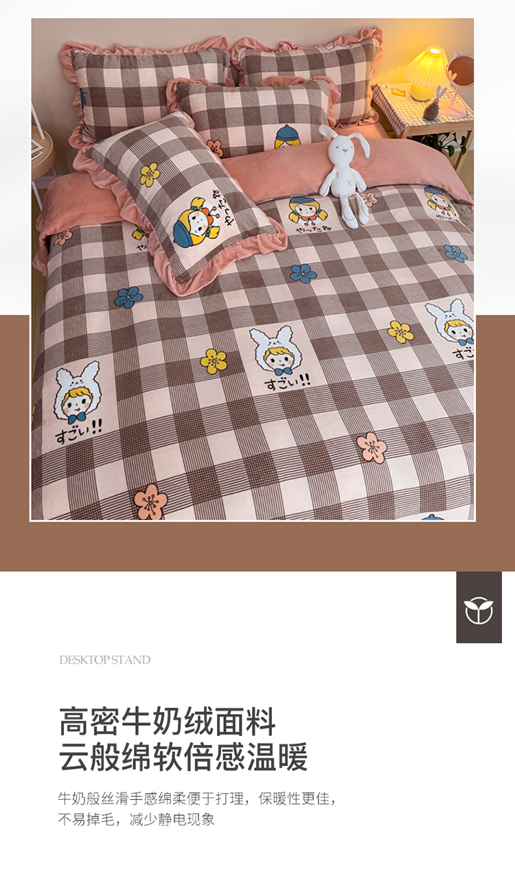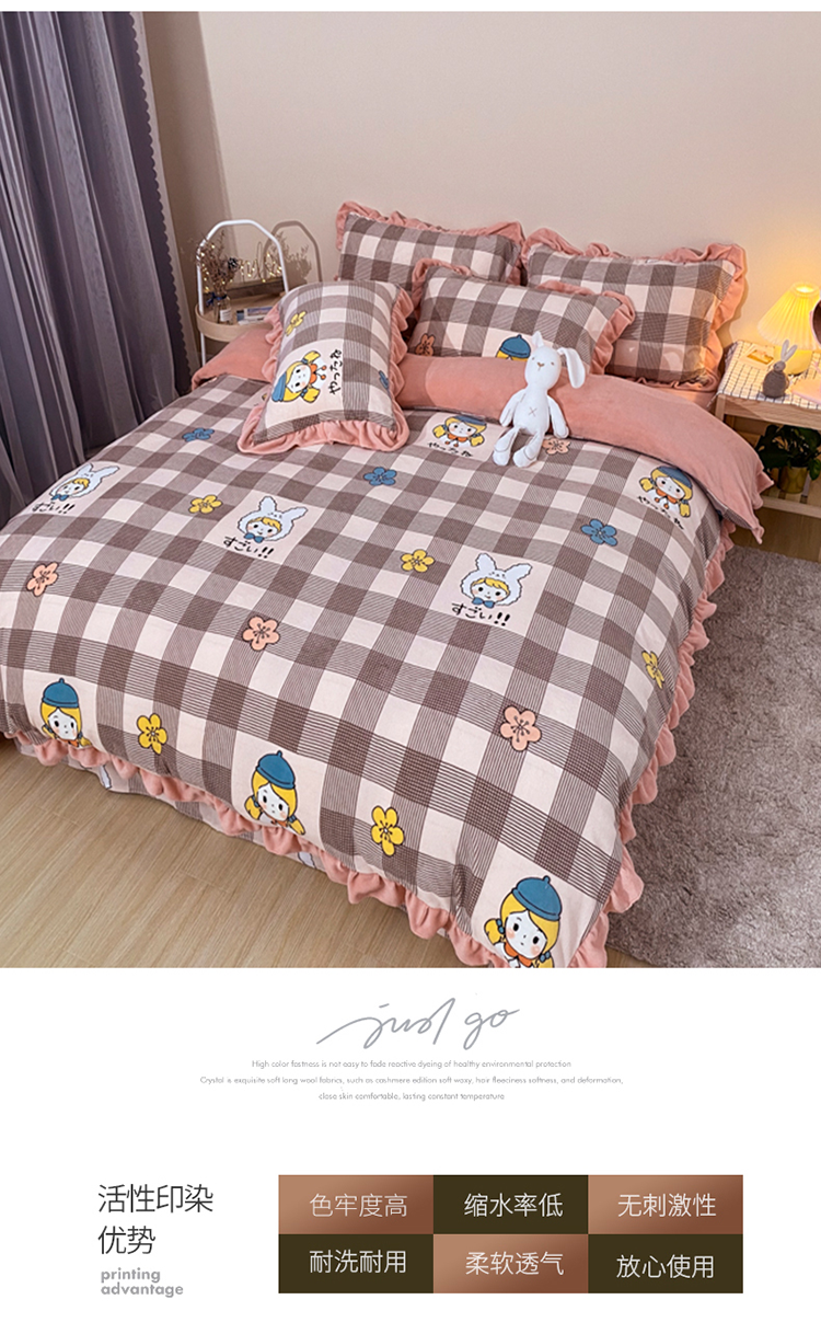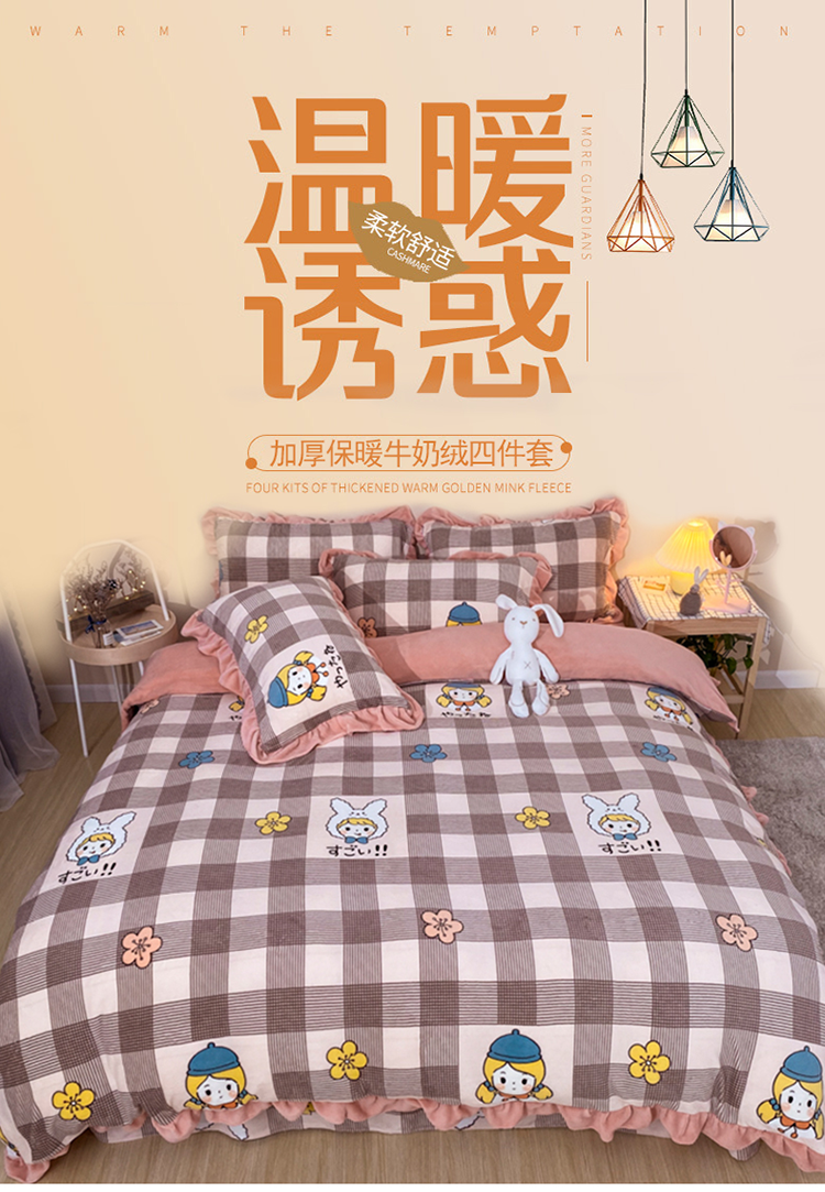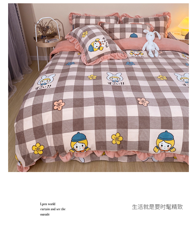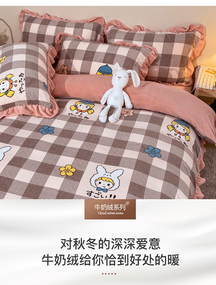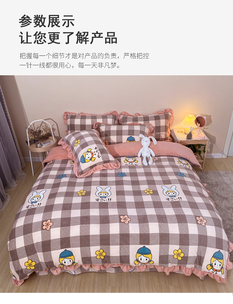 商品名称:妖妖家纺 2020新款花边牛奶绒四件套 憧憬