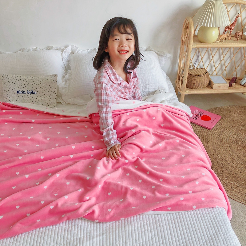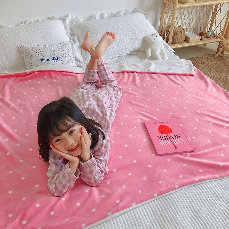 星期八2020新款双层宝宝绒盖毯被毯子毛毯模特图 爱心粉