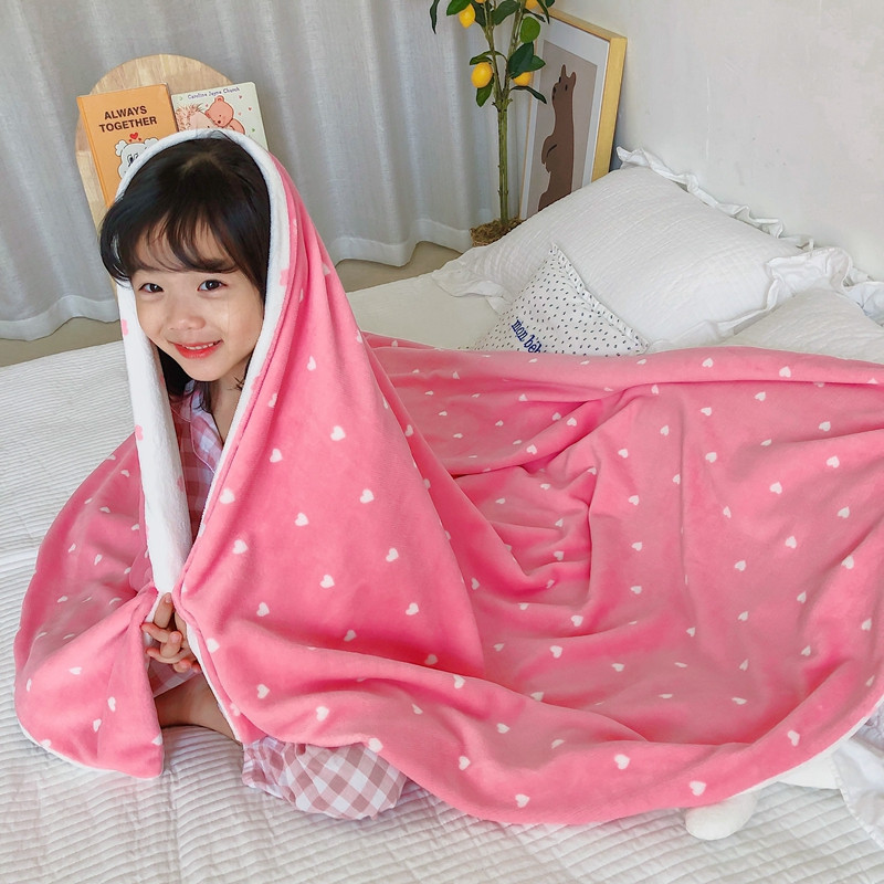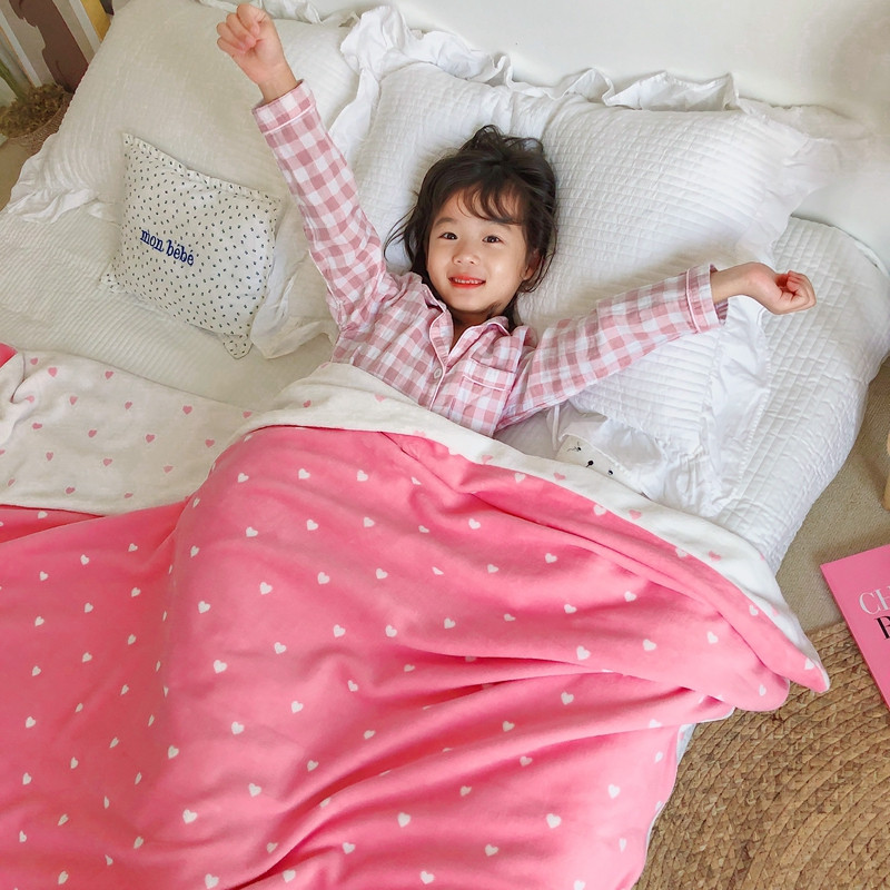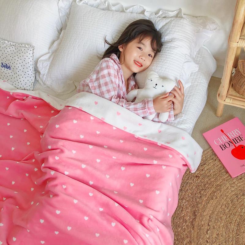 商品名称:星期八2020新款双层宝宝绒盖毯被毯子毛毯模特图 爱心粉
